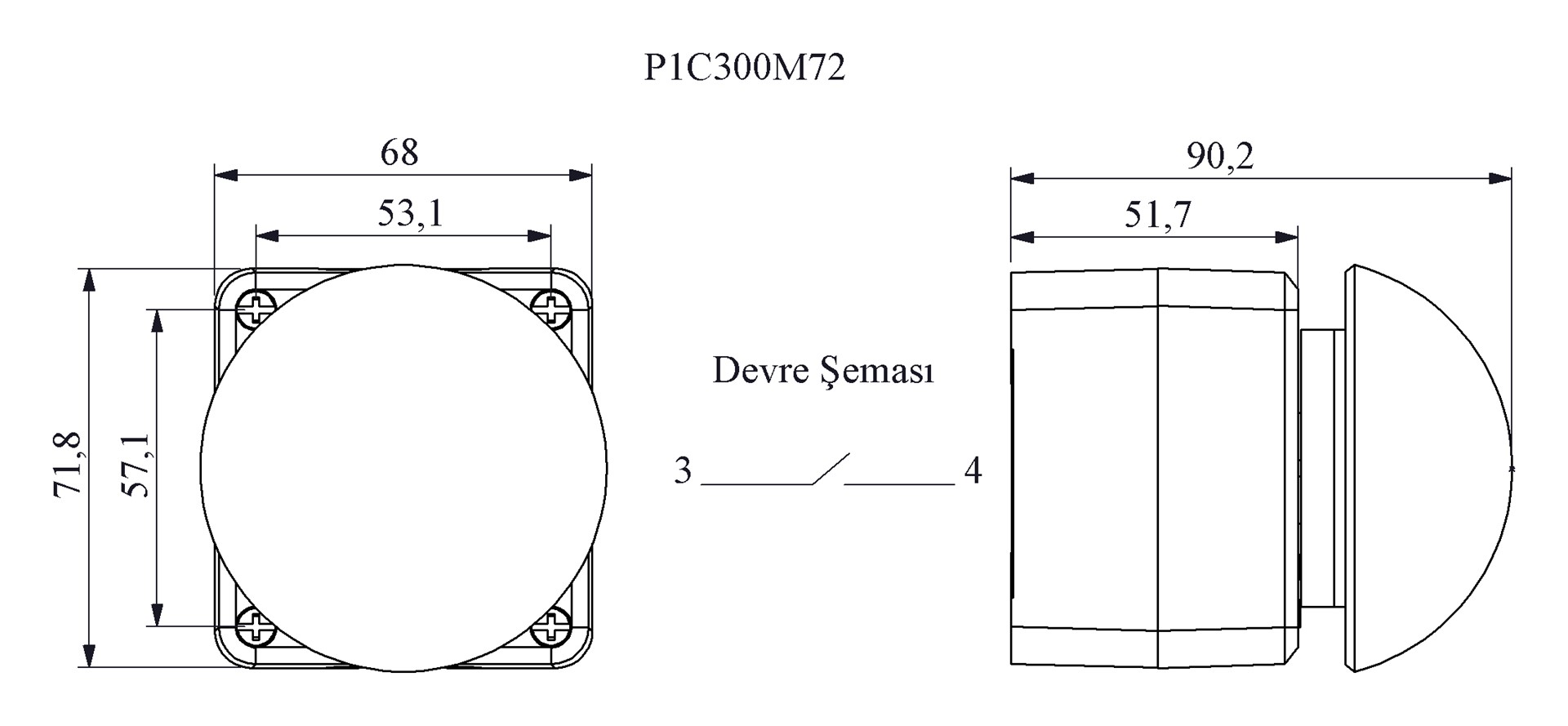 P Serisi Plastik 1 Gözlü CPDM72K+C3CK (NO) Gri-Siyah Kumanda Kutusu