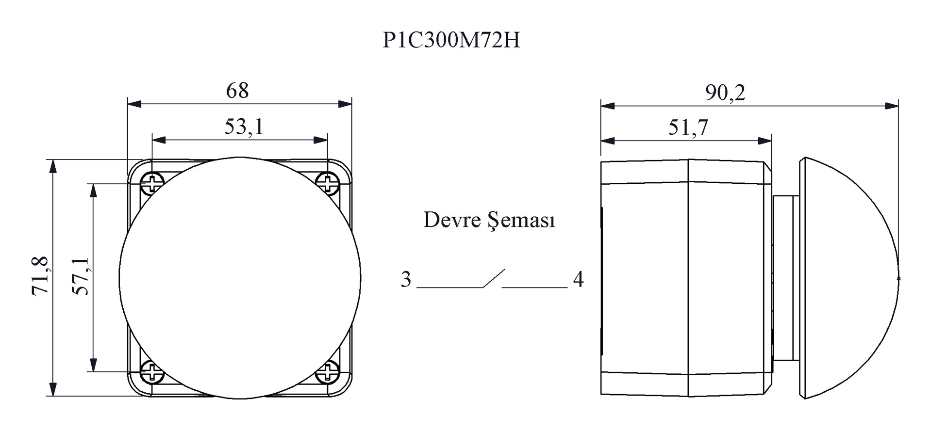 P Serisi Plastik 1 Gözlü CPDM72H+C3CK (NO) Gri-Siyah Kumanda Kutusu
