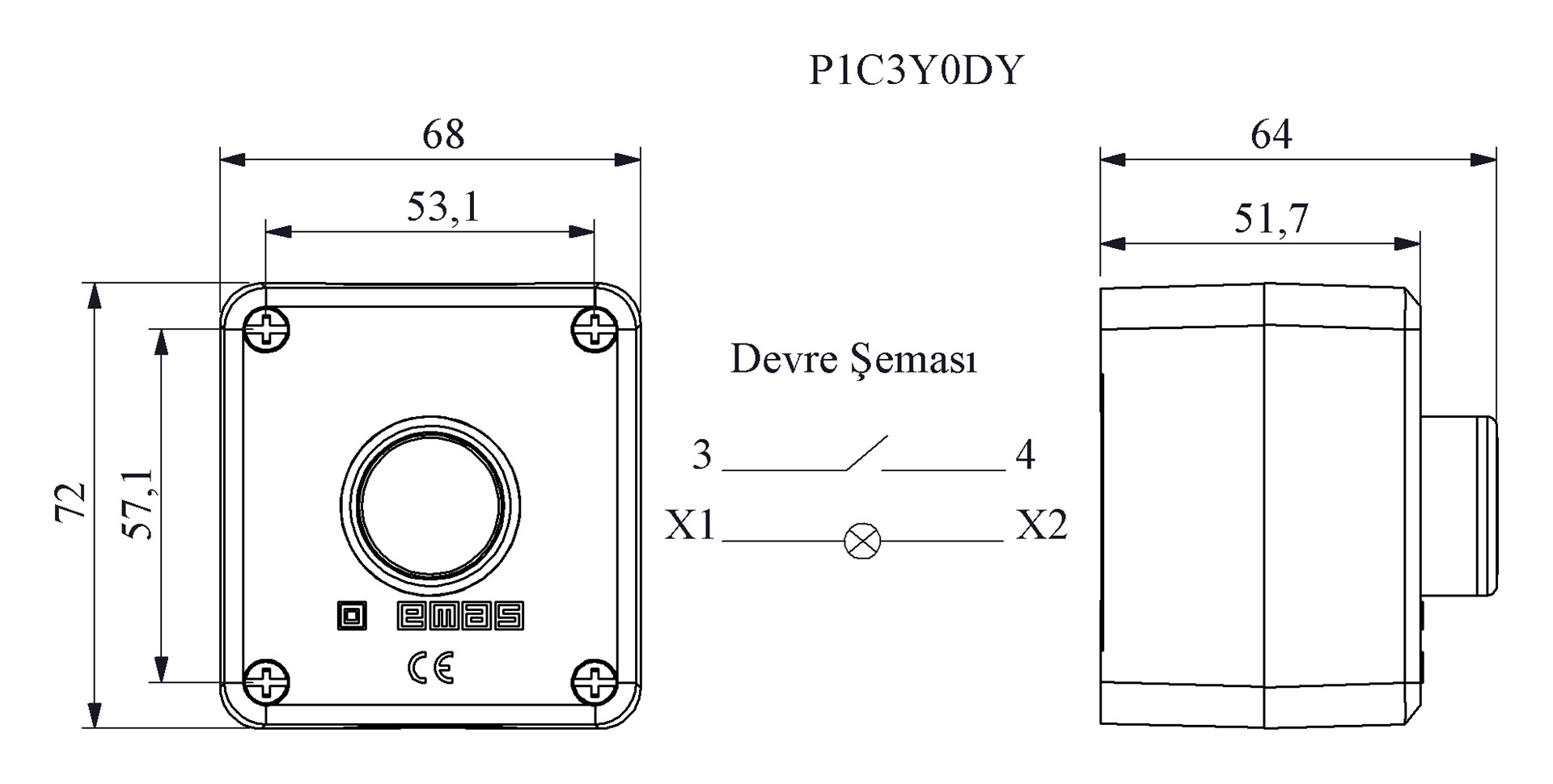 P Serisi Plastik 1 Gözlü BDDY + C3BK (NO) + CKY ( LED YEŞİL 100-230V ) Siyah-Gri Kumanda Kutusu