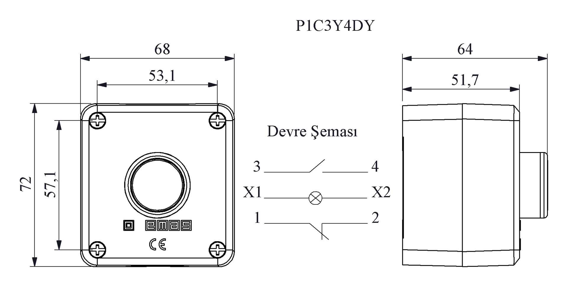 P Serisi Plastik 1 Gözlü BDDY + C3BK (NO) + CKY ( LED YEŞİL 100-230V ) + C4BK (NC) Siyah-Gri Kumanda Kutusu