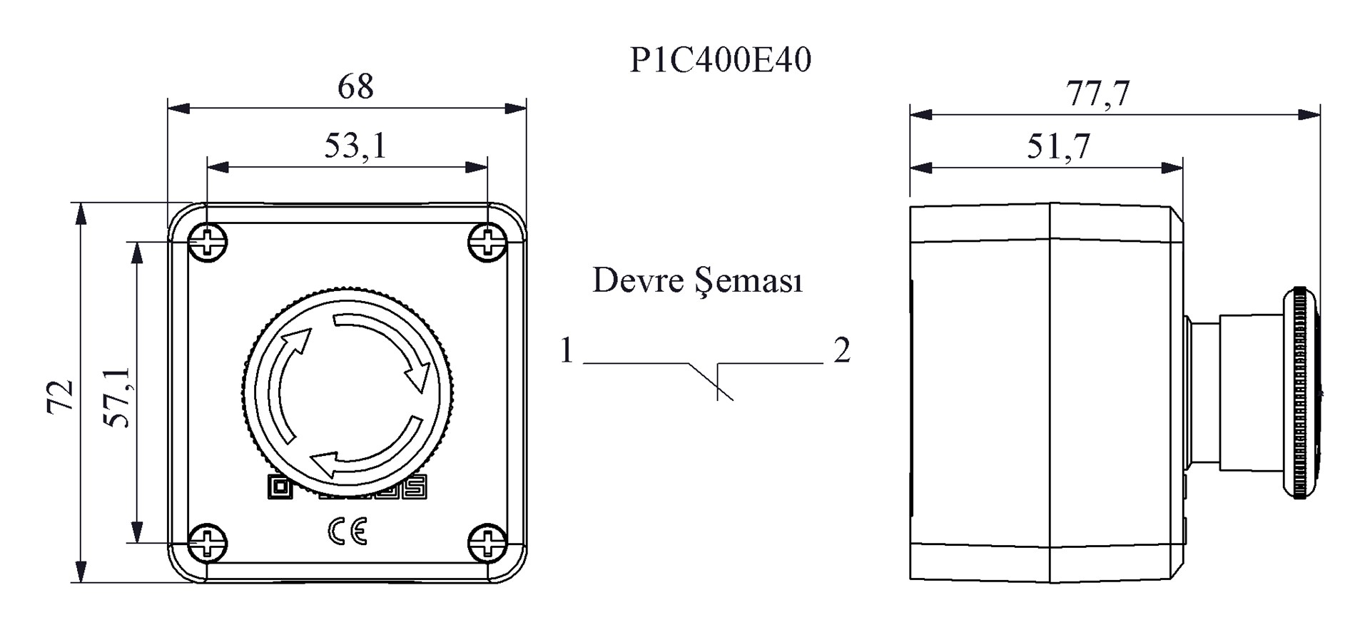 P Serisi Plastik 1 Gözlü BDE+C4BK (NC) Siyah-Gri Kumanda Kutusu