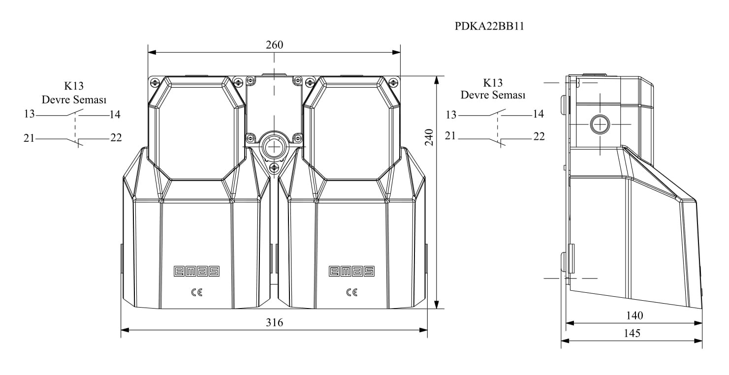 PDK Serisi Metal Korumalı (1NO+1NC)+(1NO+1NC) Taşıma Kol Delikli Kalıcılı Çiftli Sarı Plastik Pedal