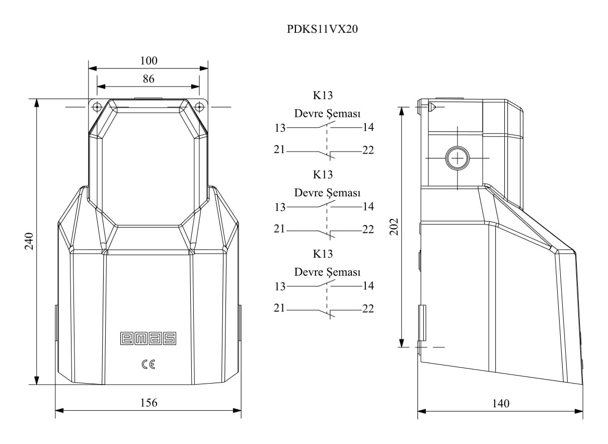 PDK Serisi Metal Korumalı 3*(1NO+1NC) 2+1 İki Kademeli Tekli Sarı Plastik Pedal