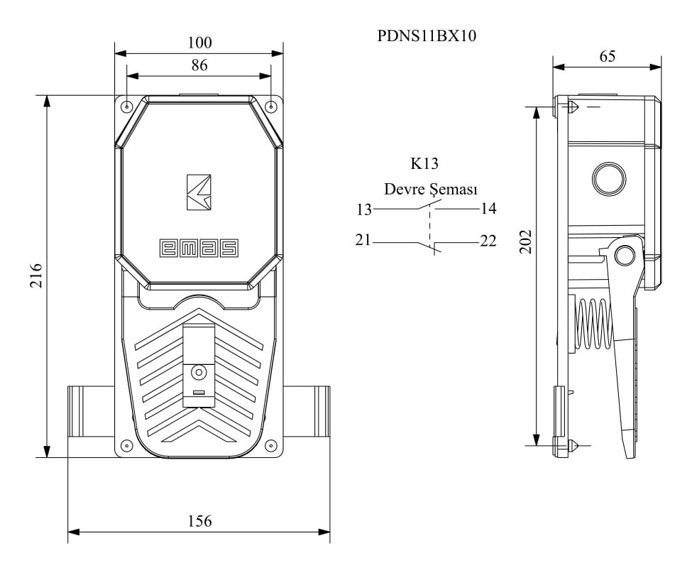 PDN Serisi Korumasız 1NO+1NC Tekli Sarı Plastik Pedal