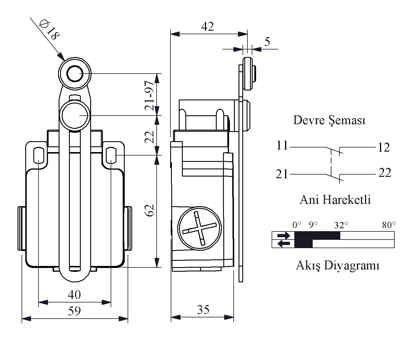L2 Metal Gövde 18 mm Plastik Ayarlanabilir Kollu Makara Ani Hareketli 2NC Sınır Şalter