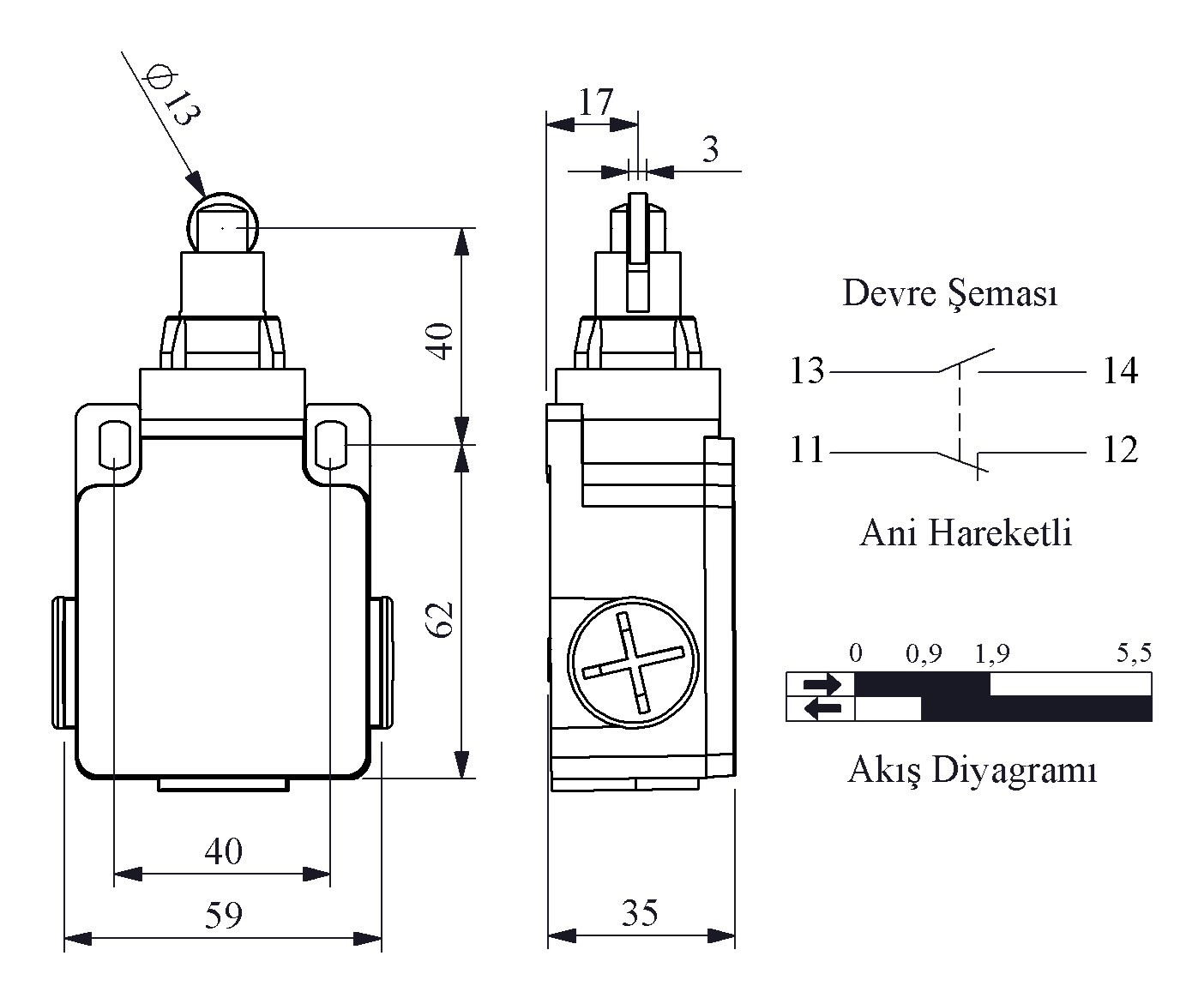 L2 Metal Gövde 13 mm Metal Makaralı Pim Ani Hareketli 1NO+1NC Sınır Şalter