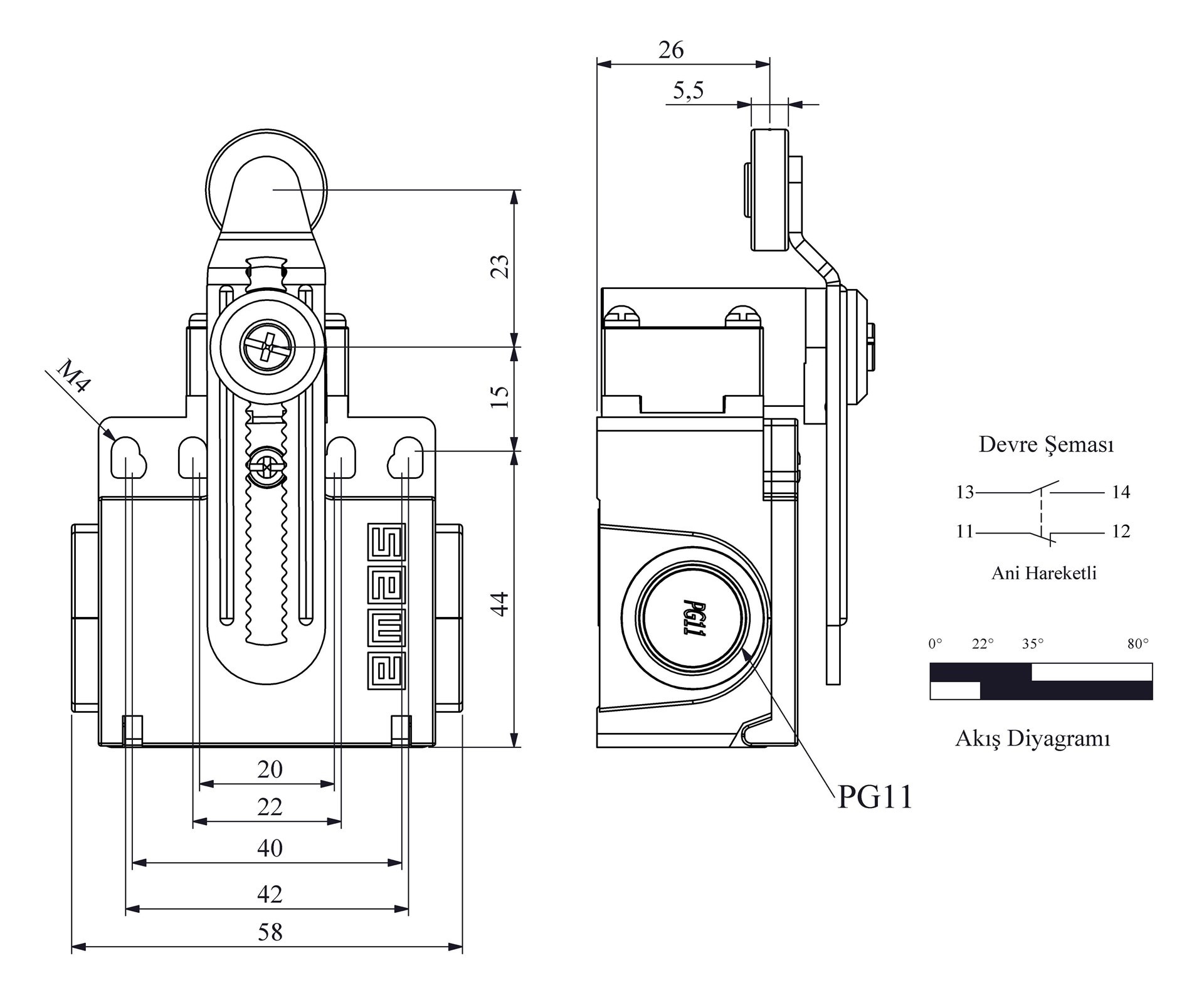 L22 Plastik Gövde 18 mm Plastik Ayarlanabilir Kollu Makara Ani Hareketli 1NO+1NC Sınır Şalter