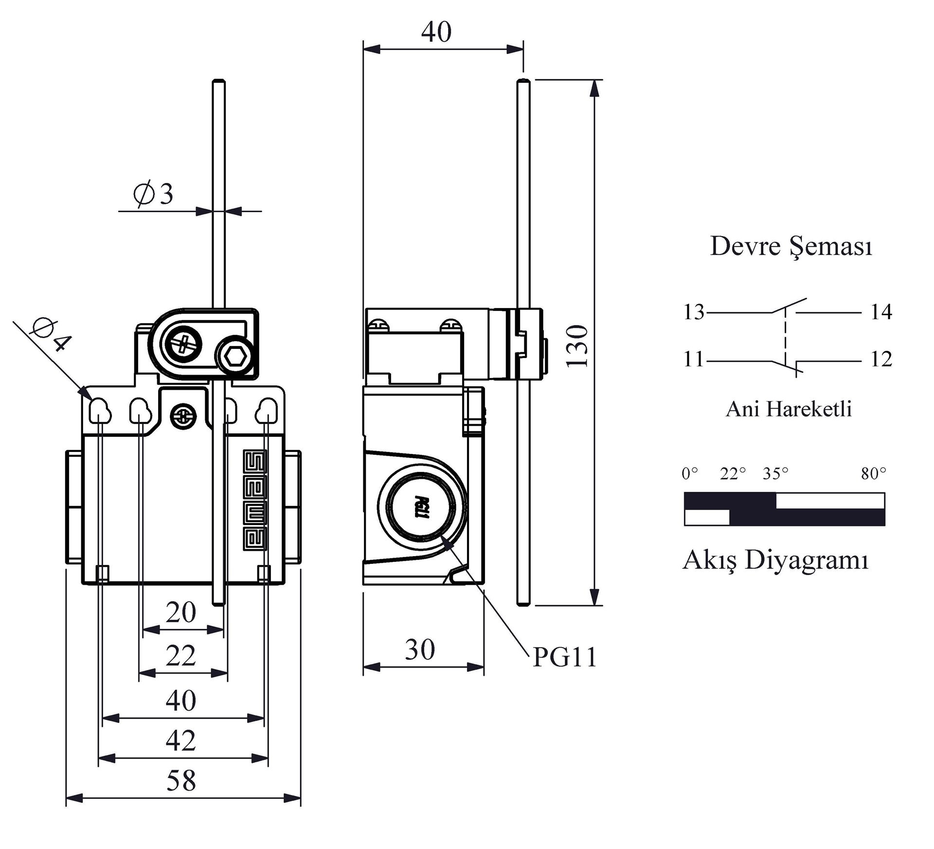 L22 Plastik Gövde 3 mm Fiber Rijit Kol Ani Hareketli 1NO+1NC Sınır Şalter