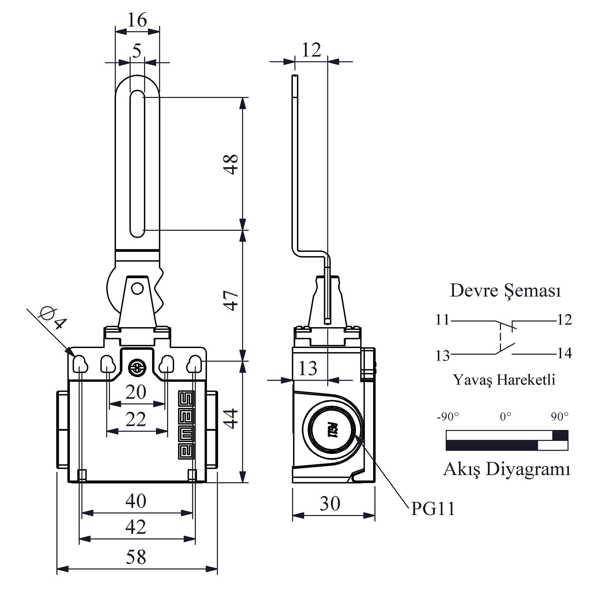 L22 Plastik Gövde Metal Menteşe Emniyet Sivici Yavaş Hareketli 1NO+1NC Sınır Şalter