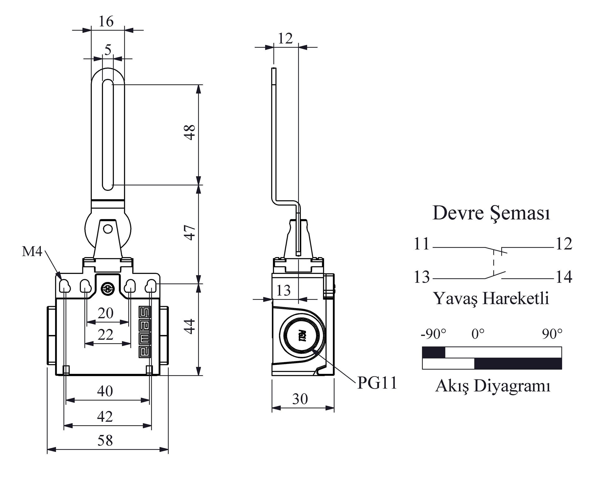 L22 Plastik Gövde Metal Menteşe Emniyet Sivici Yavaş Hareketli 1NO+1NC Sınır Şalter