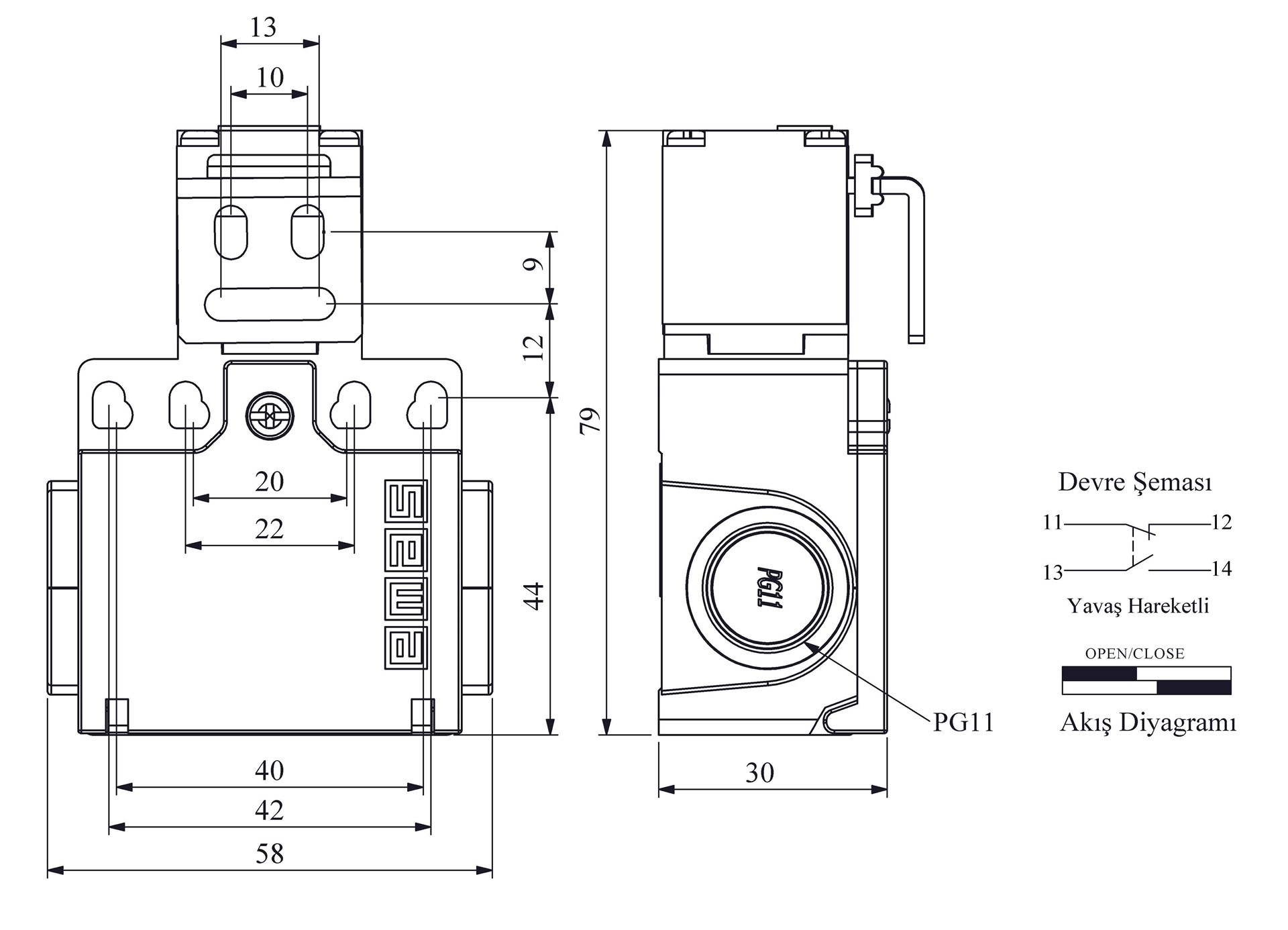 L22 Plastik Gövde Metal Dik Açılı Anahtarlı Emniyet Sivici Yavaş Hareketli 1NO+1NC Sınır Şalter