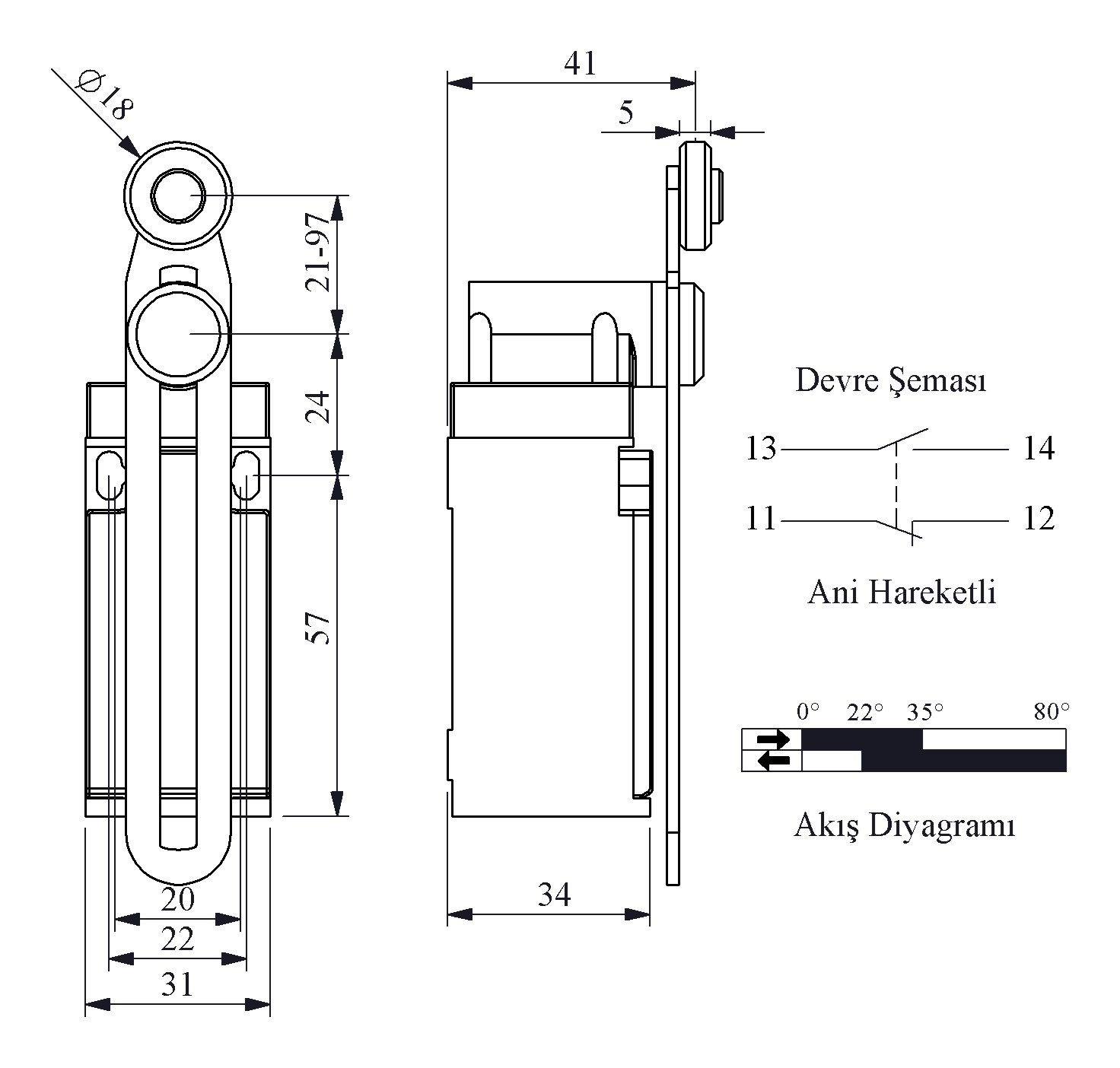 L3 Plastik Gövde 18 mm Plastik Ayarlanabilir Kollu Makara Ani Hareketli 1NO+1NC Sınır Şalter
