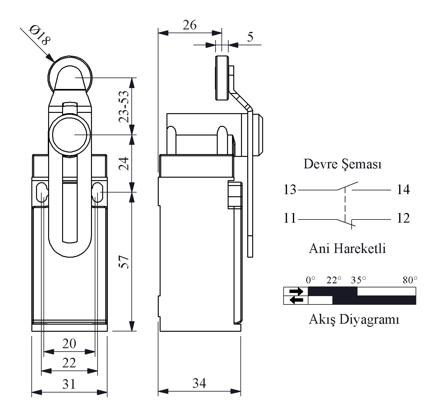 L3 Plastik Gövde 18 mm Plastik Ayarlanabilir Kollu Makara Ani Hareketli 1NO+1NC Sınır Şalter