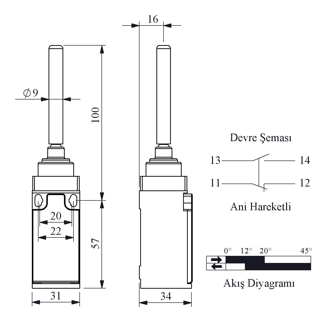 L3 Plastik Gövde 9 mm Plastik Rijit Kol Ani Hareketli 1NO+1NC Sınır Şalter