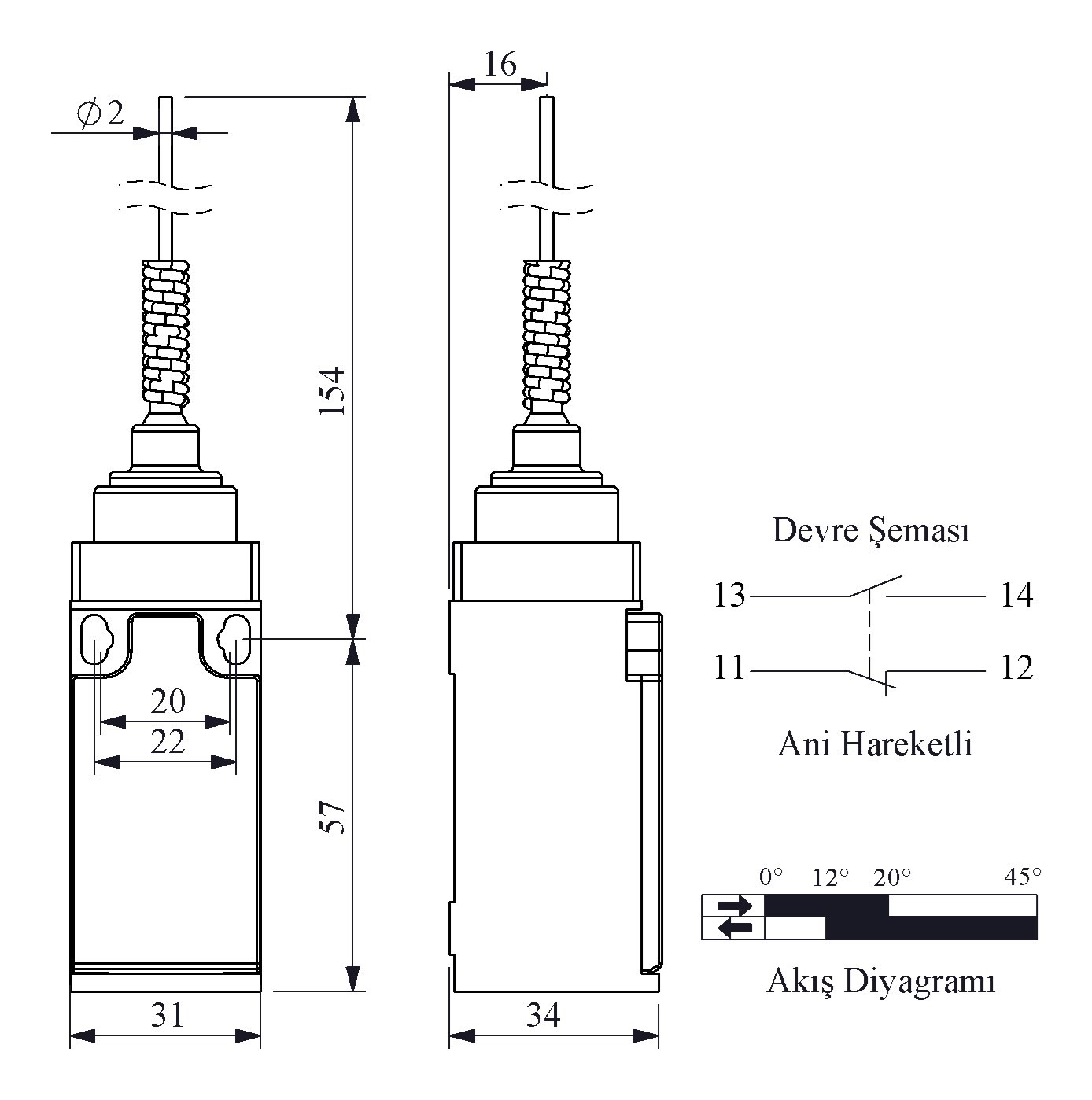 L3 Plastik Gövde 2 mm Sivri Metal Uç Metal Yay Kol Ani Hareketli 1NO+1NC Sınır Şalter