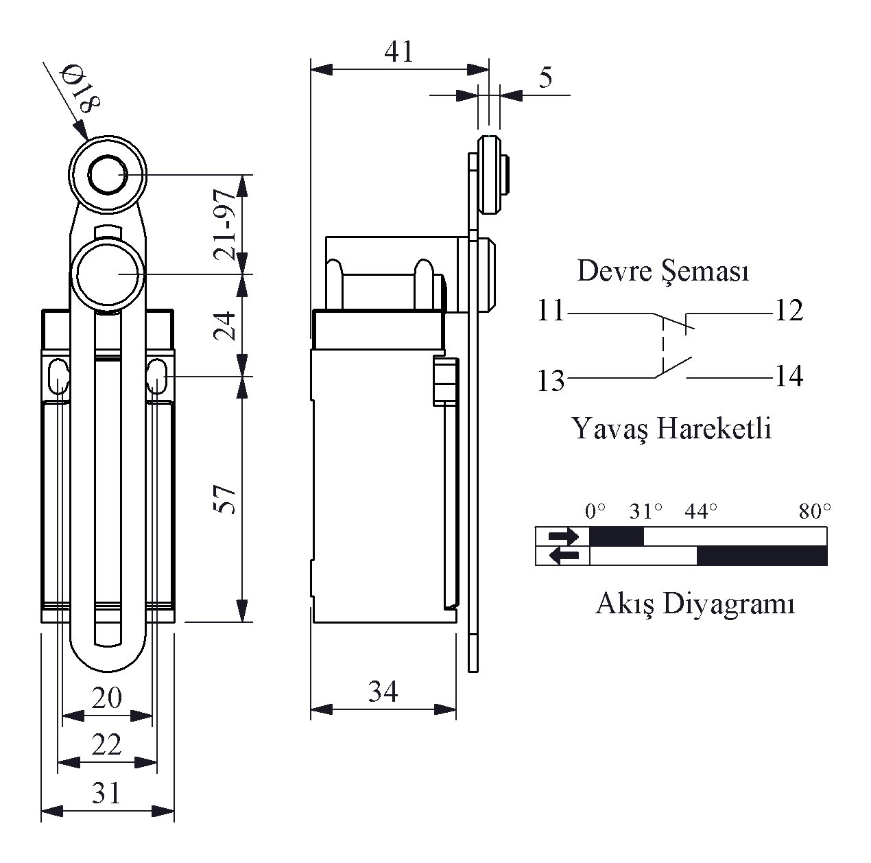 L3 Plastik Gövde 18 mm Metal Ayarlanabilir Kollu Makara Yavaş Hareketli 1NO+1NC Sınır Şalter