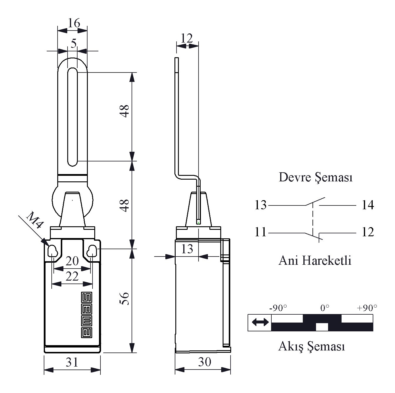 L5 Plastik Gövde Metal Menteşe Emniyet Sivici Ani Hareketli 1NO+1NC Sınır Şalter