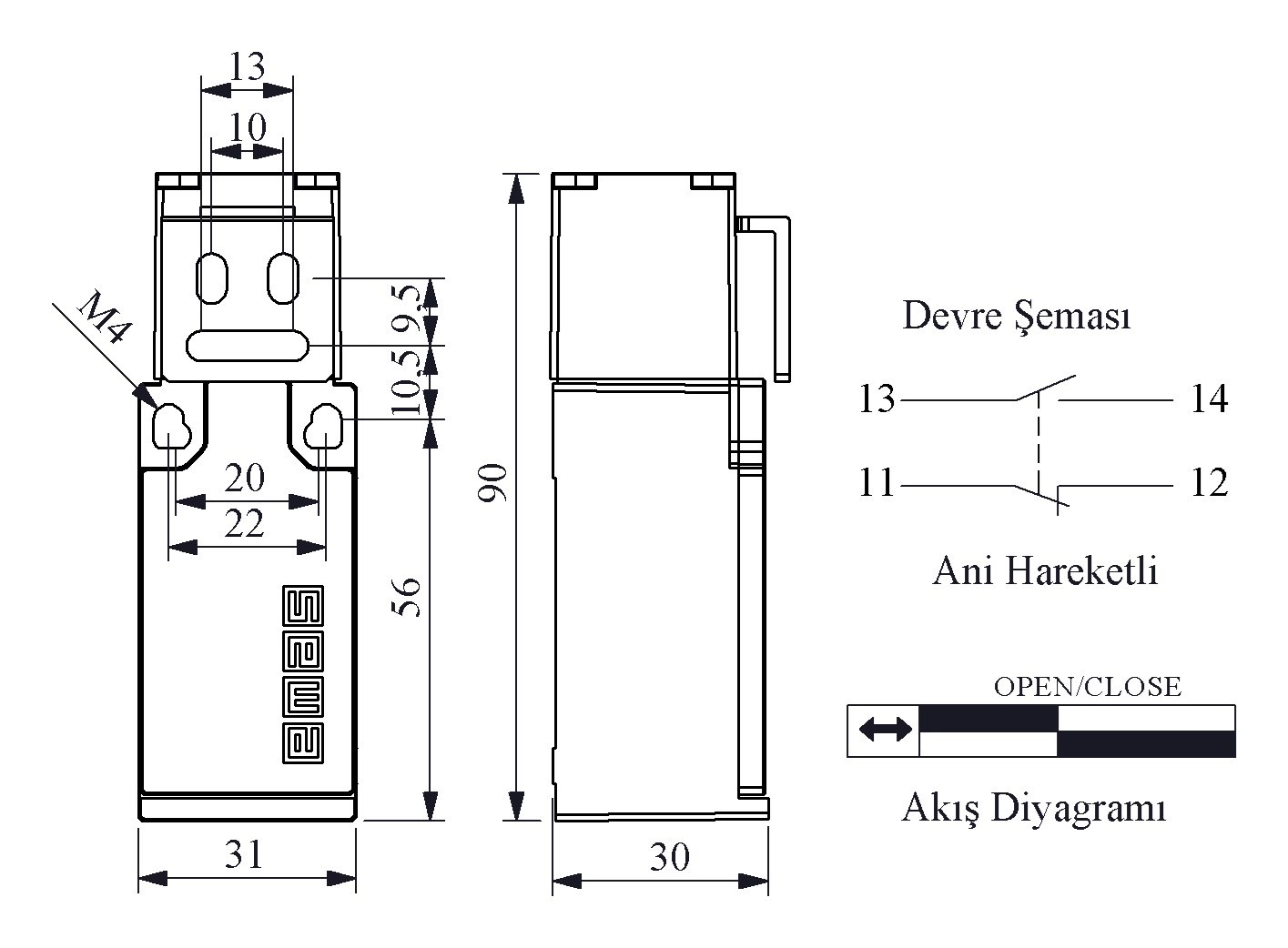 L5 Plastik Gövde Metal Dik Açılı Anahtarlı Emniyet Sivici Ani Hareketli 1NO+1NC Sınır Şalter