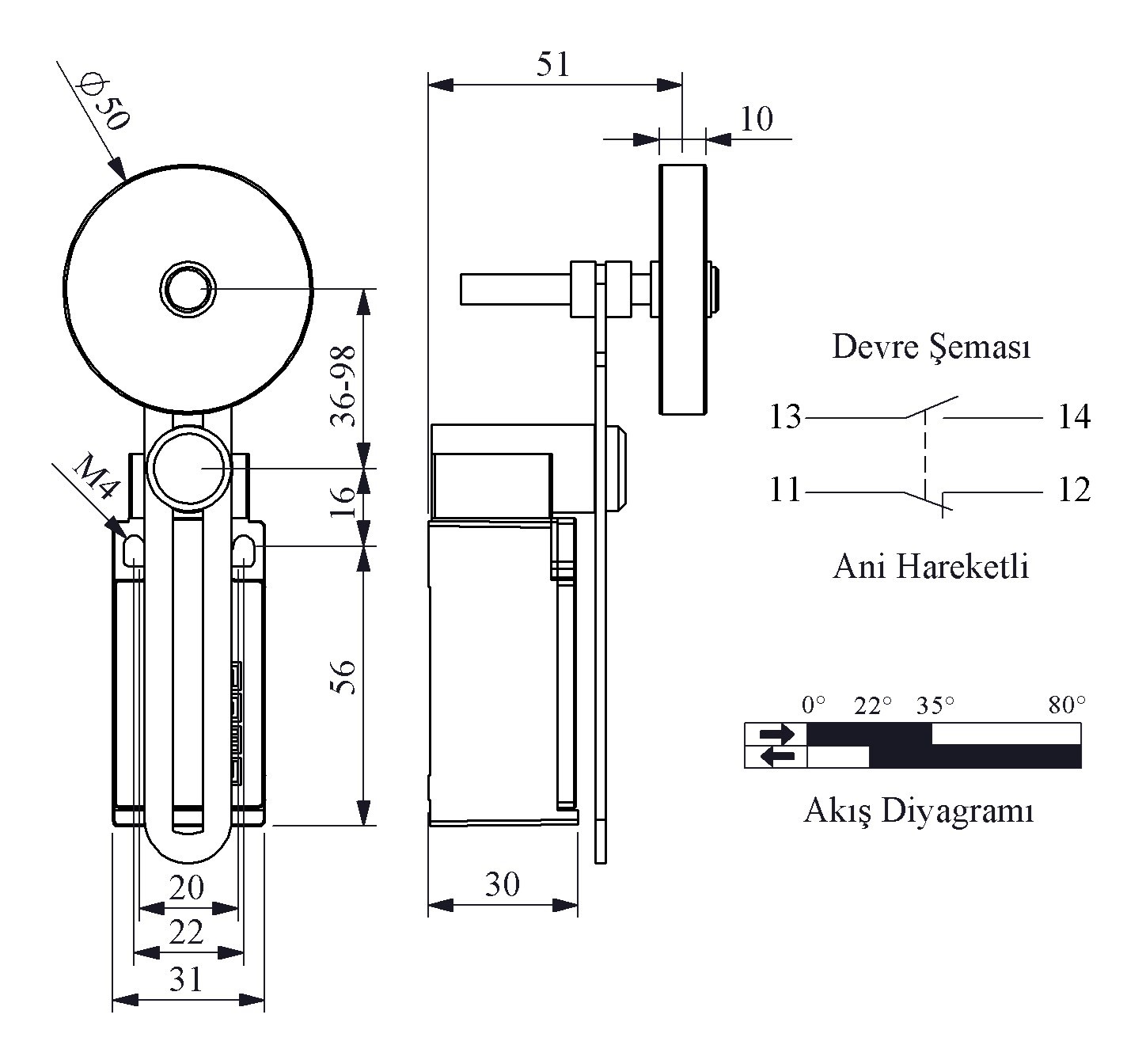 L5 Plastik Gövde 50 mm Lastik Ayarlanabilir Kollu Makara Ayarlı Makara Ani Hareketli 1NO+1NC Sınır Şalter