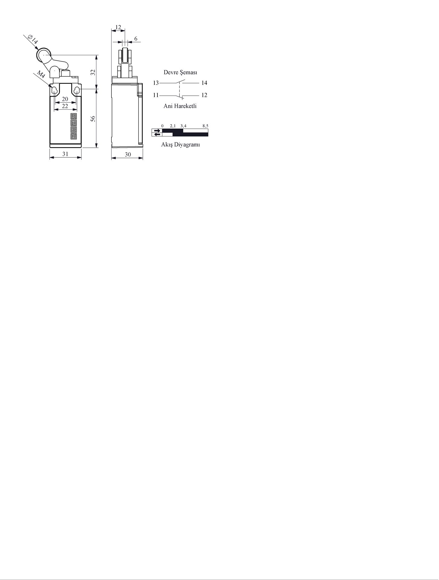 L5 Plastik Gövde 14 mm Metal Makaralı Manivela Ani Hareketli 1NO+1NC Sınır Şalter