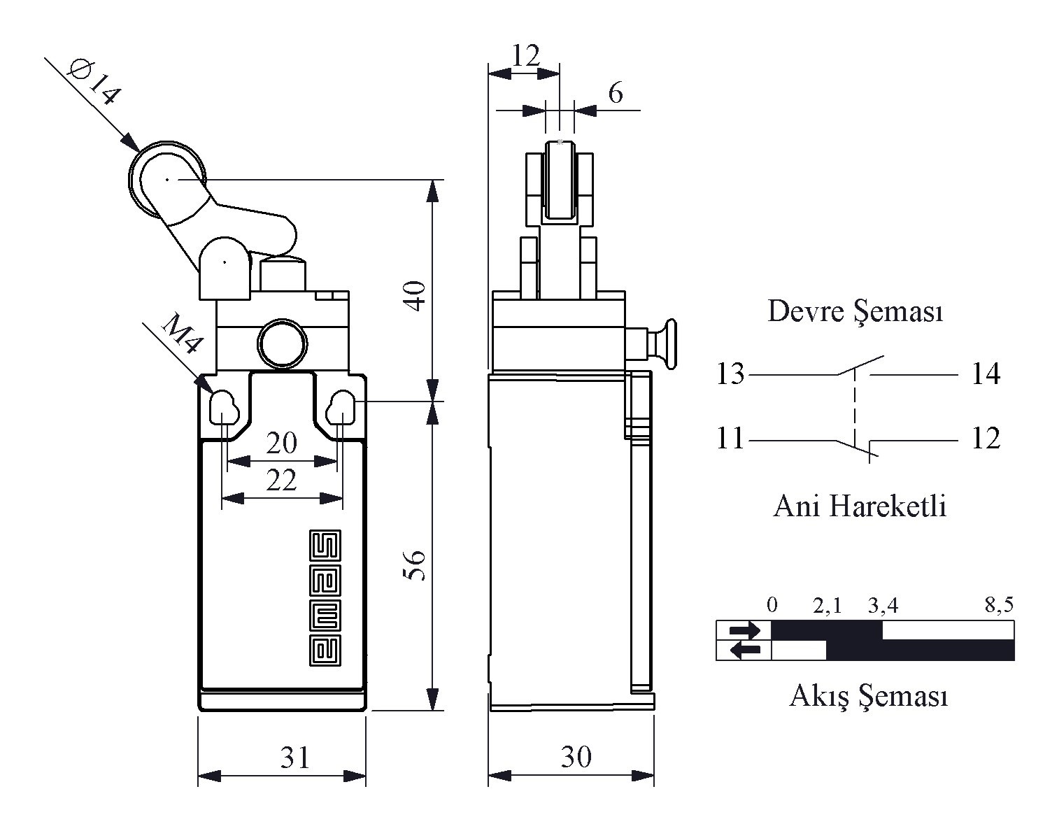 L5 Plastik Gövde 14 mm Plastik Makaralı Manivela Resetli Ani Hareketli 1NO+1NC Sınır Şalter