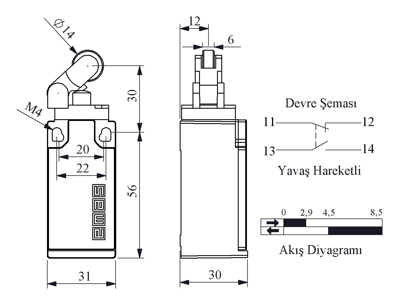 L5 Plastik Gövde 14 mm Metal Makaralı Manivela Yavaş Hareketli 1NO+1NC Sınır Şalter