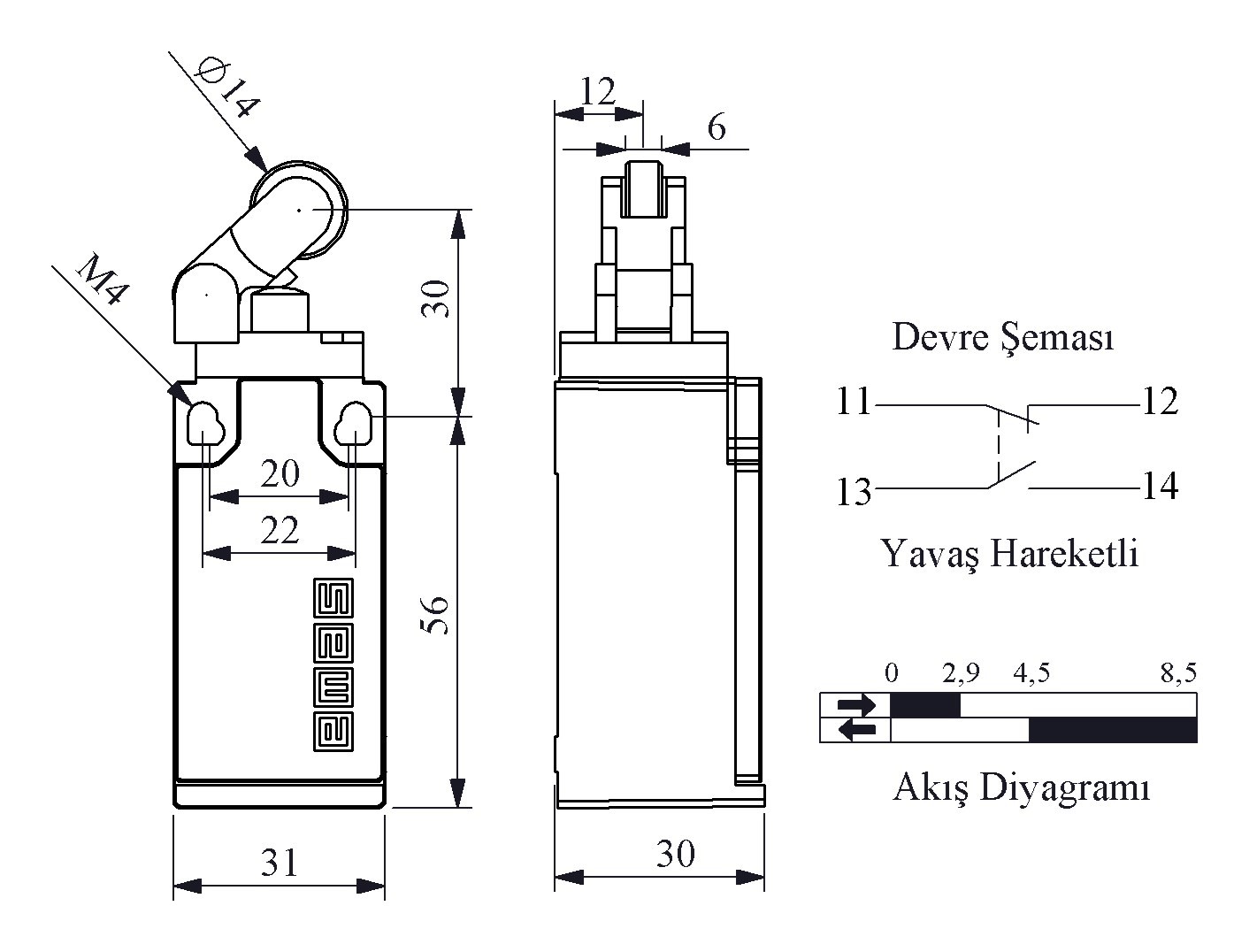 L5 Plastik Gövde 14 mm Plastik Makaralı Manivela Yavaş Hareketli 1NO+1NC Sınır Şalter