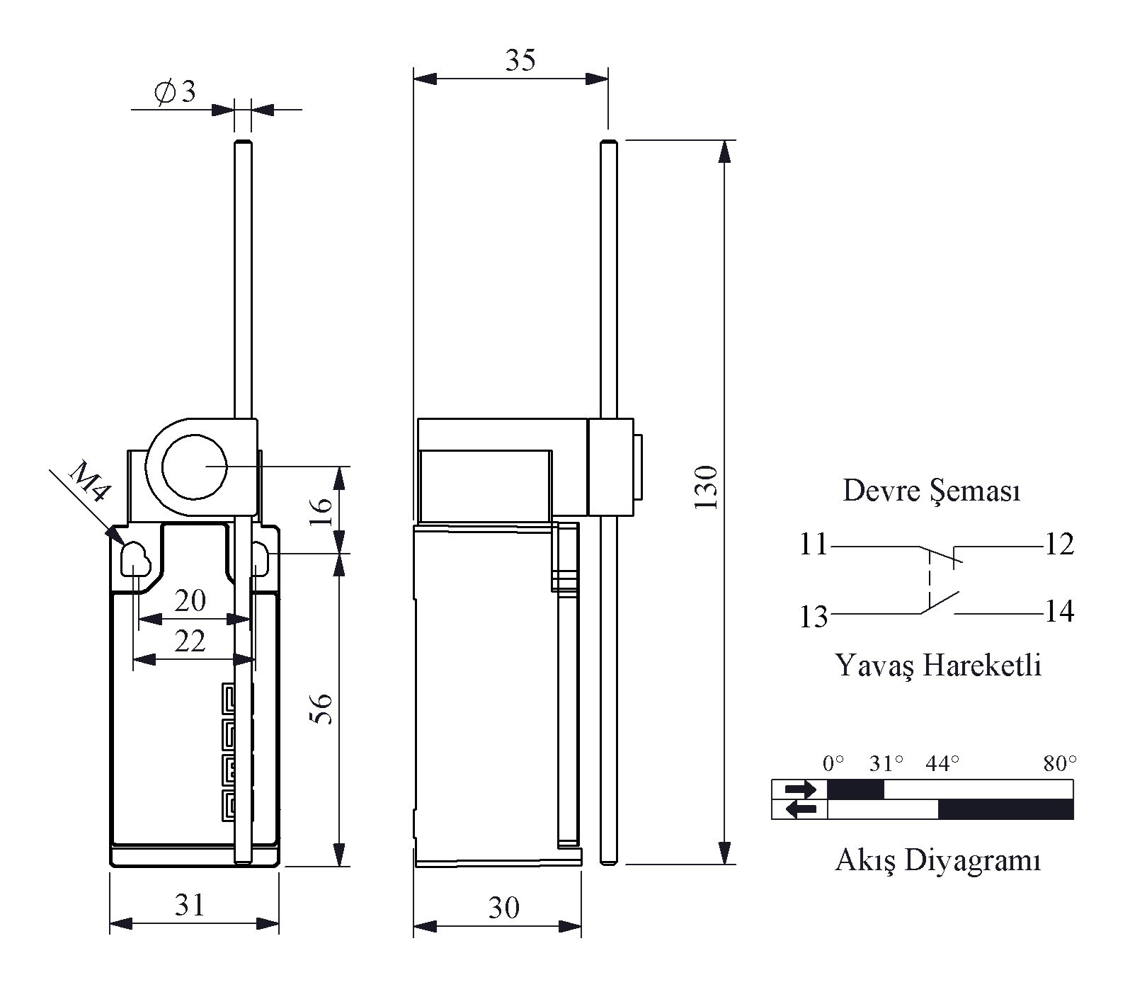L5 Plastik Gövde 3 mm Metal Rijit Kol Yavaş Hareketli 1NO+1NC Sınır Şalter