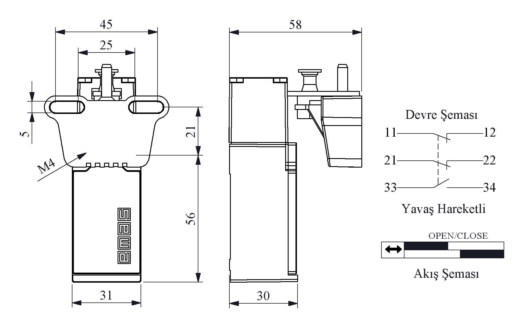 L5 Plastik Gövde Metal Toleranslı Anahtarlı Emniyet Sivici Yavaş Hareketli 1NO+2NC Sınır Şalter
