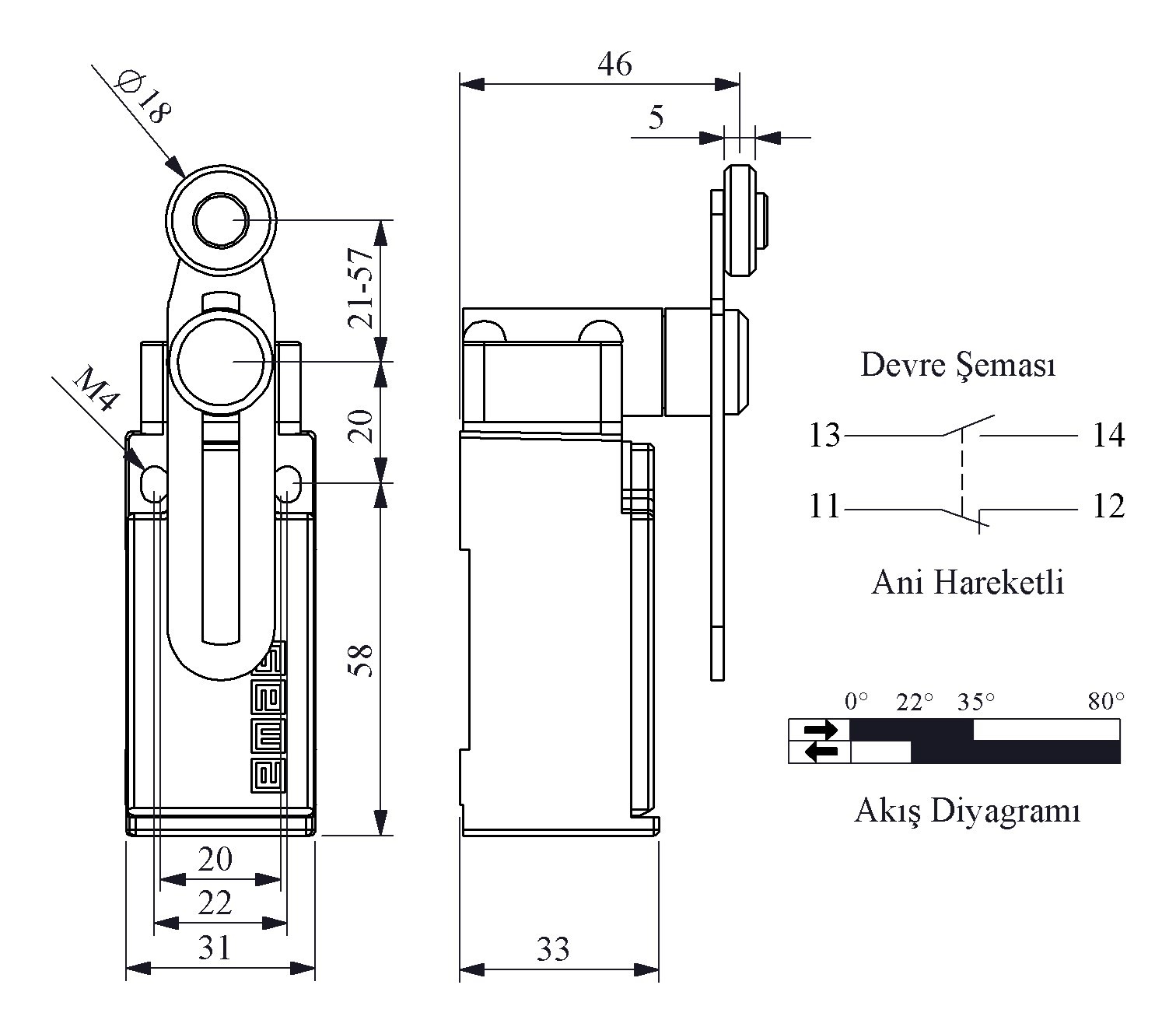 L51 Metal Gövde 18 mm Metal Ayarlanabilir Kollu Makara Ani Hareketli 1NO+1NC Sınır Şalter