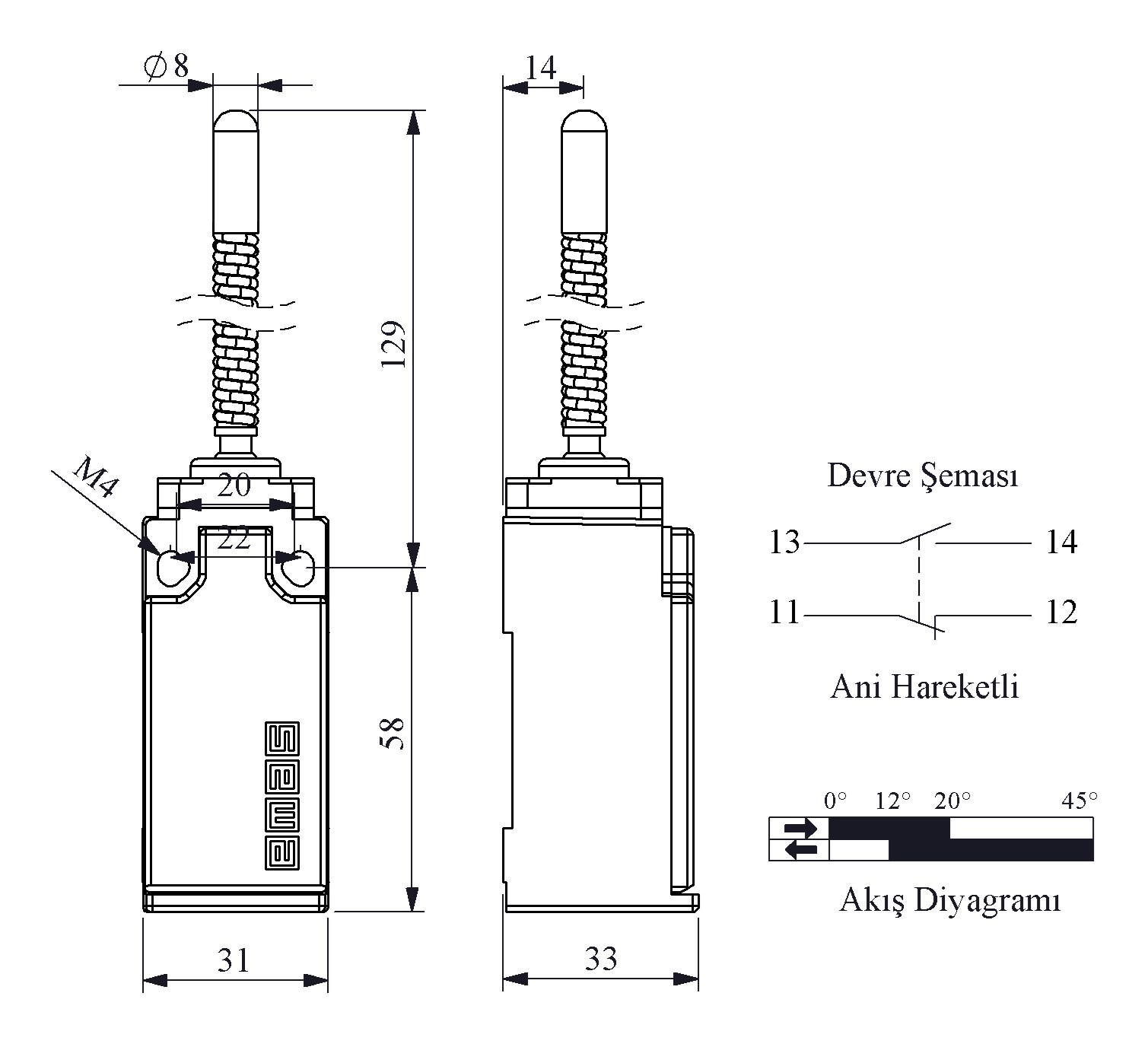 L51 Metal Gövde 7 mm Küt Metal Uç Metal Yay Kol Ani Hareketli 1NO+1NC Sınır Şalter
