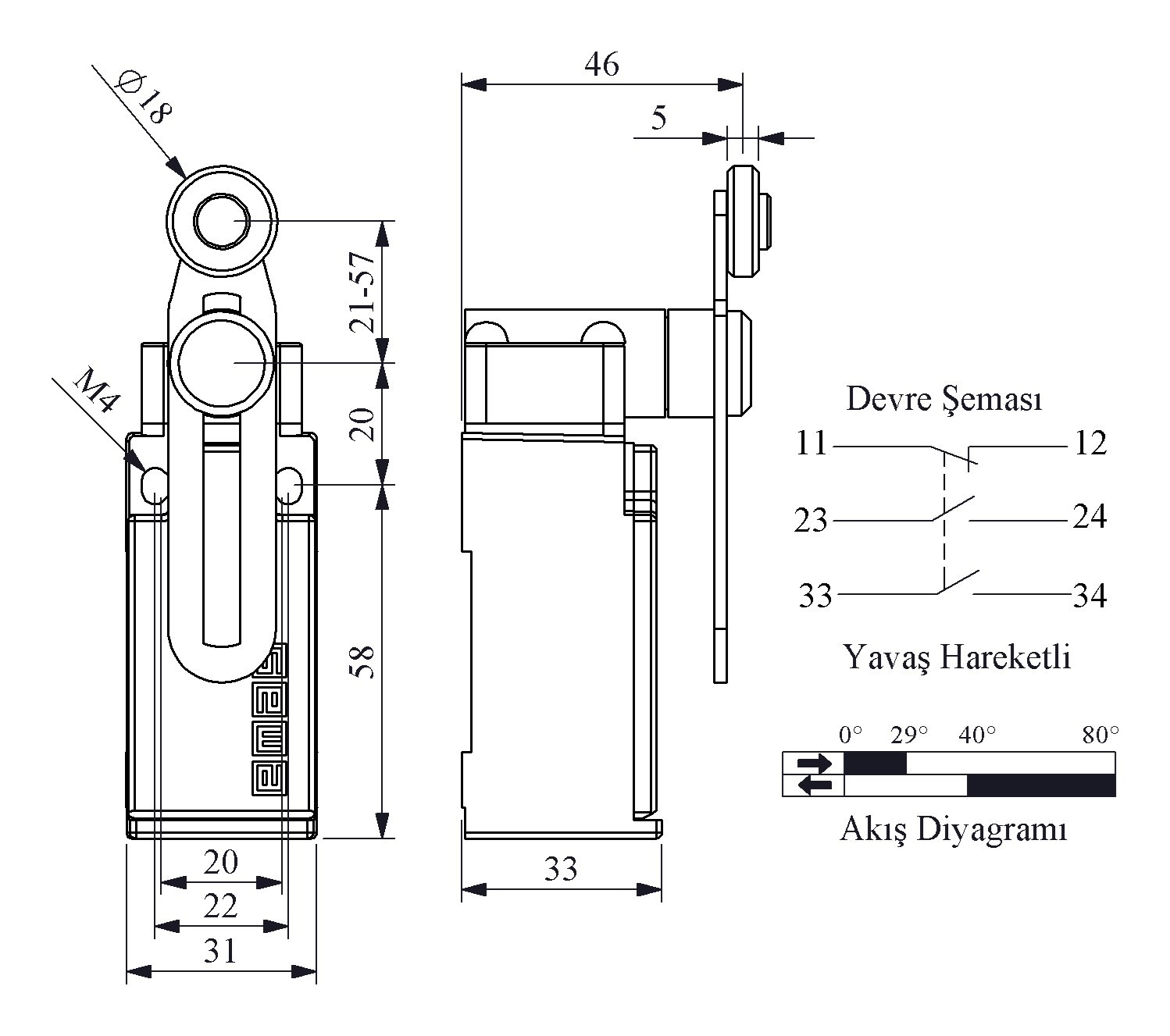 L51 Metal Gövde 18 mm Metal Ayarlanabilir Kollu Makara Yavaş Hareketli 2NO+1NC Sınır Şalter
