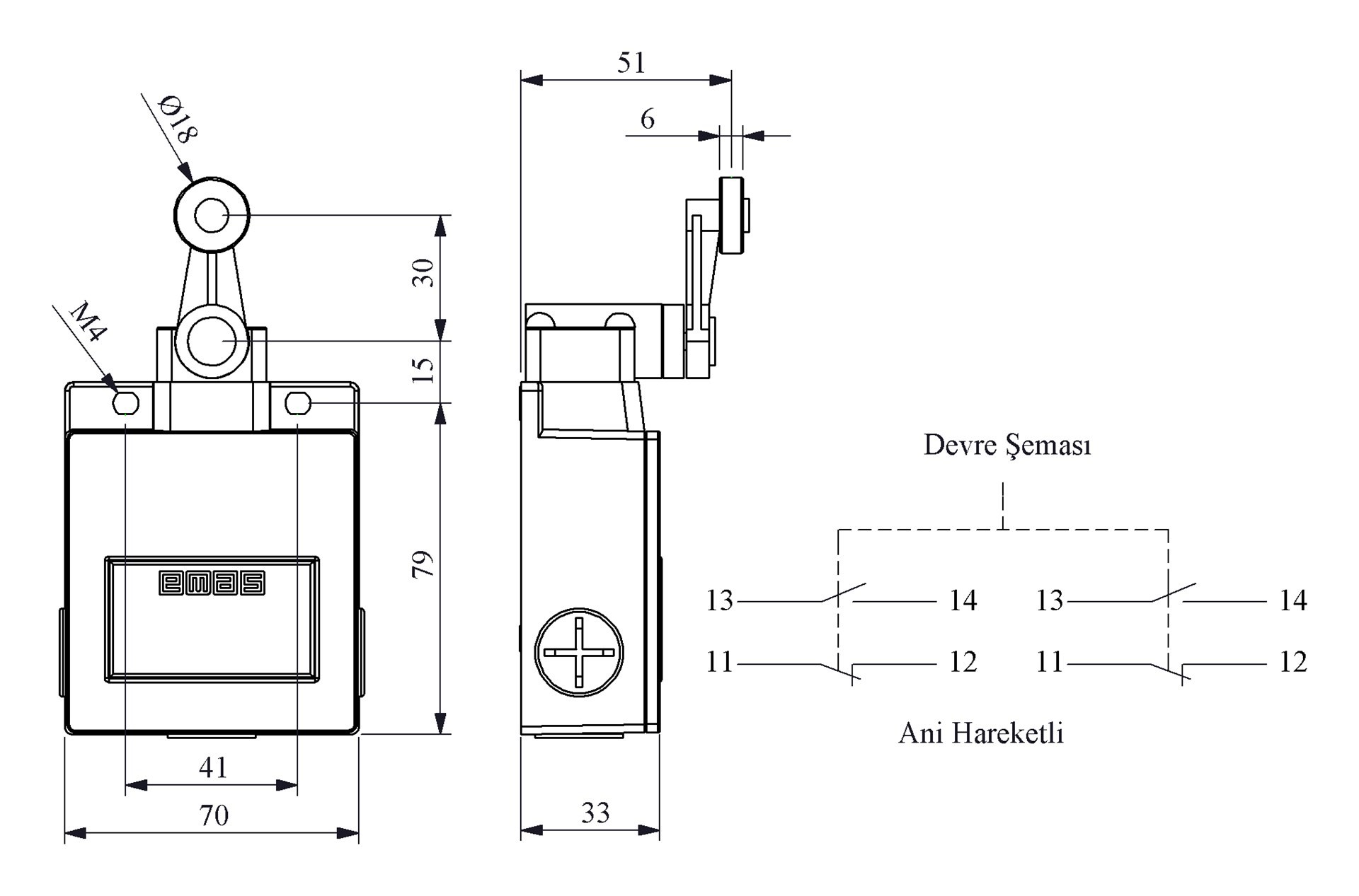 L54 Metal Gövde 18 mm Metal Kollu Makara Ani Hareketli 2* (1NC+1NO ) Sınır Şalter
