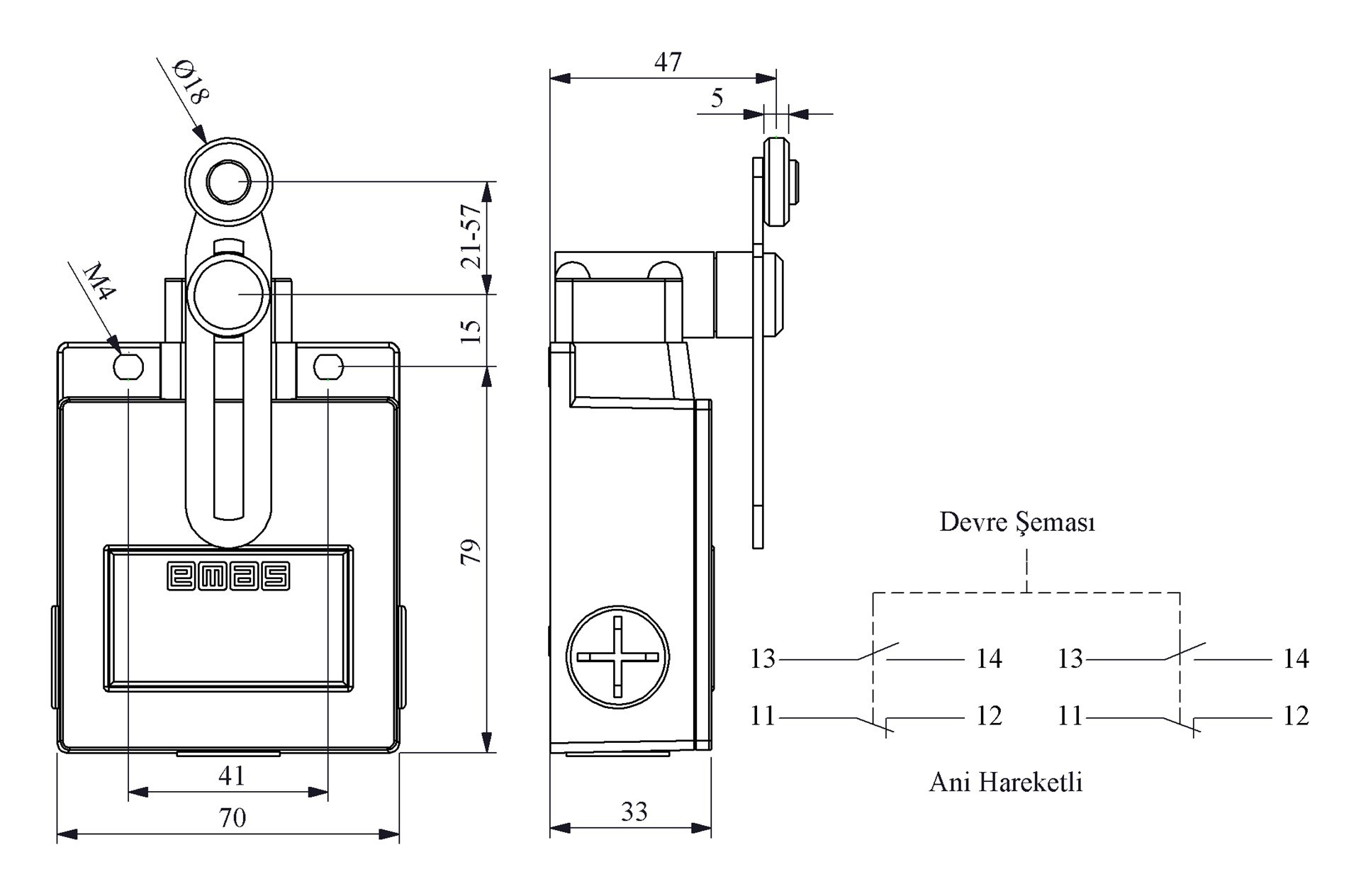L54 Metal Gövde 18 mm Plastik Ayarlanabilir Kollu Makara Ani Hareketli 2* (1NC+1NO ) Sınır Şalter