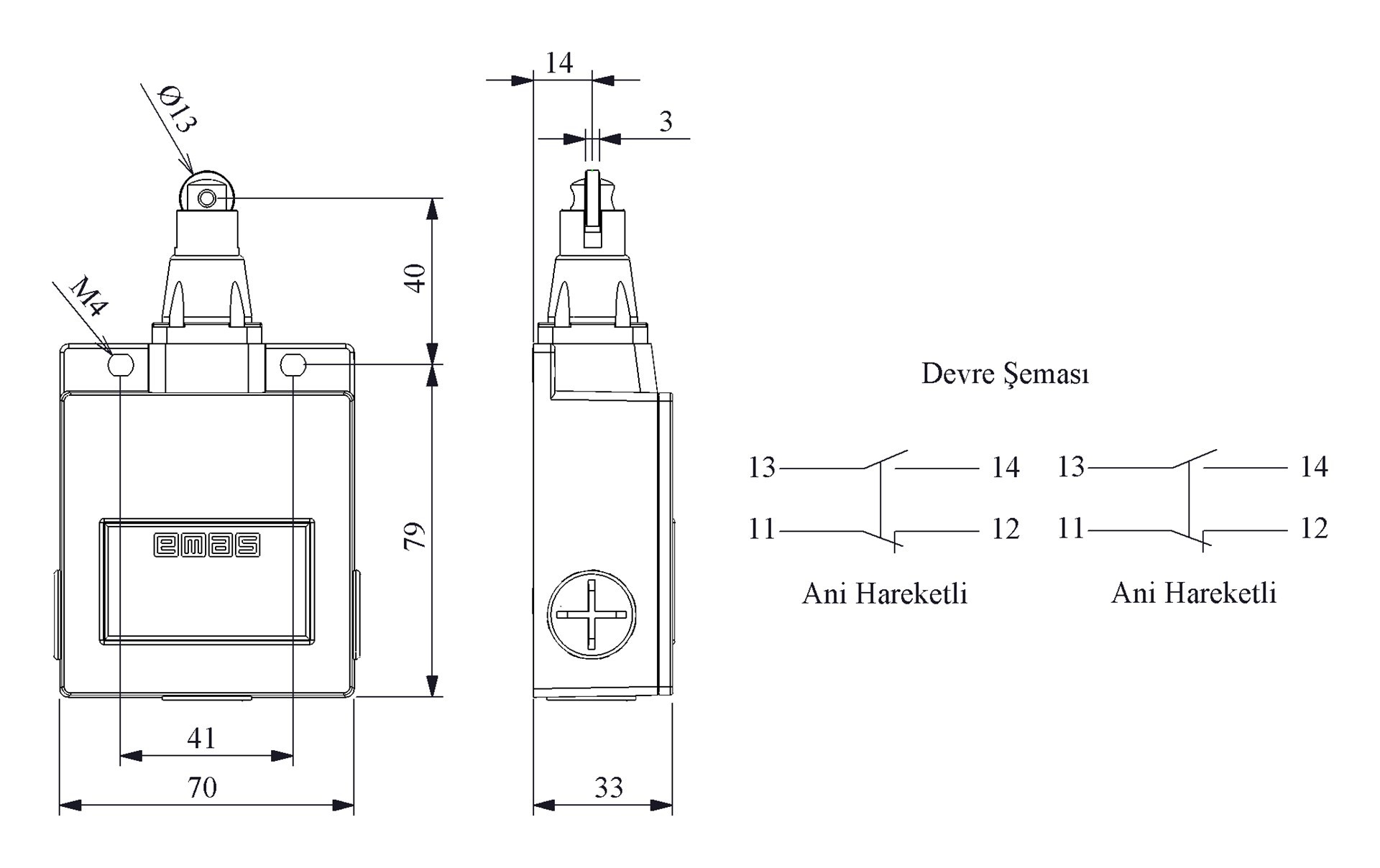 L54 Metal Gövde 13 mm Metal Makaralı Pim Ani Hareketli 2* (1NC+1NO ) Sınır Şalter