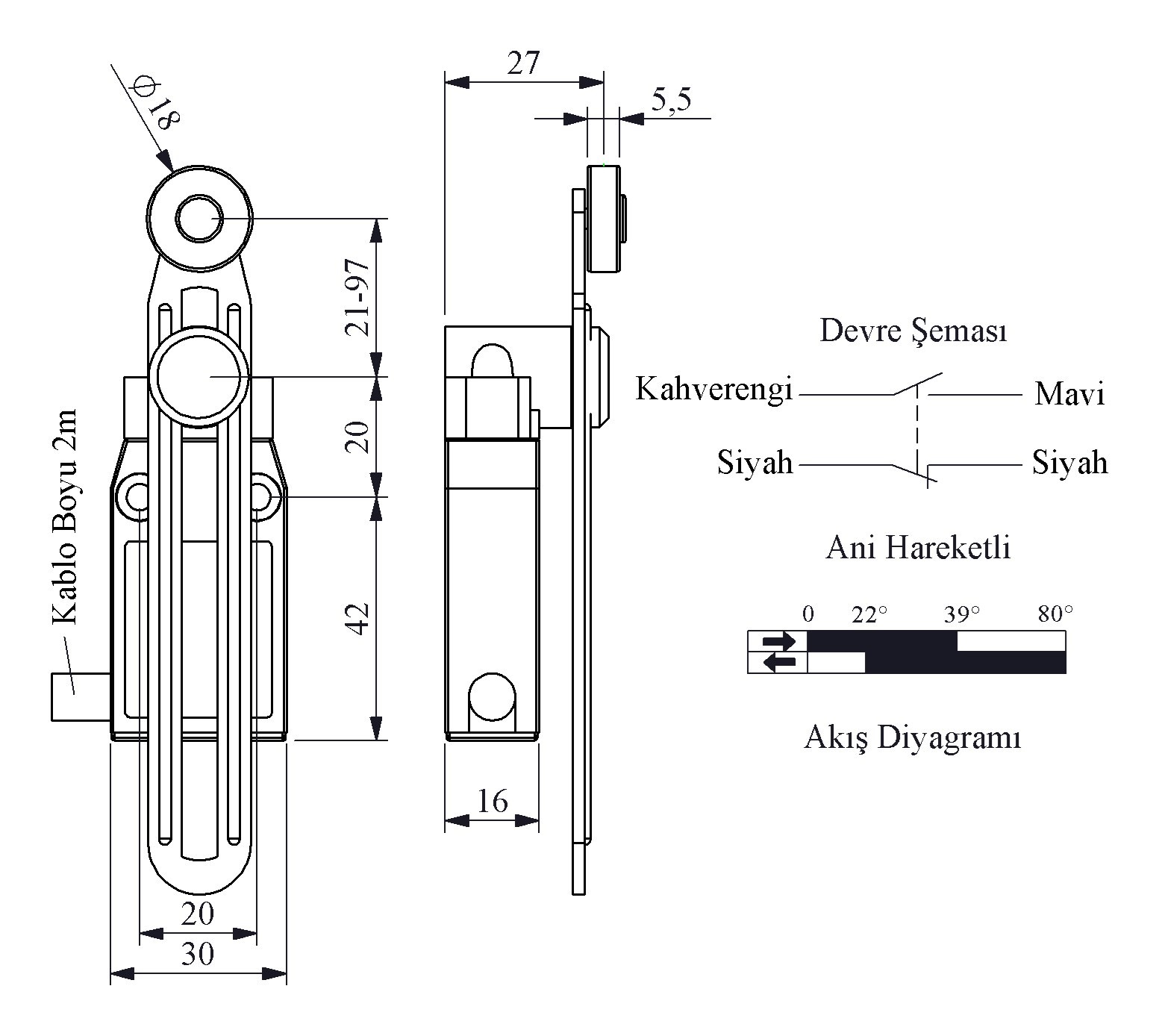 L66 Plastik Gövde 18 mm Plastik Ayarlanabilir Kollu Makara Ani Hareketli 1NO+1NC Sınır Şalter