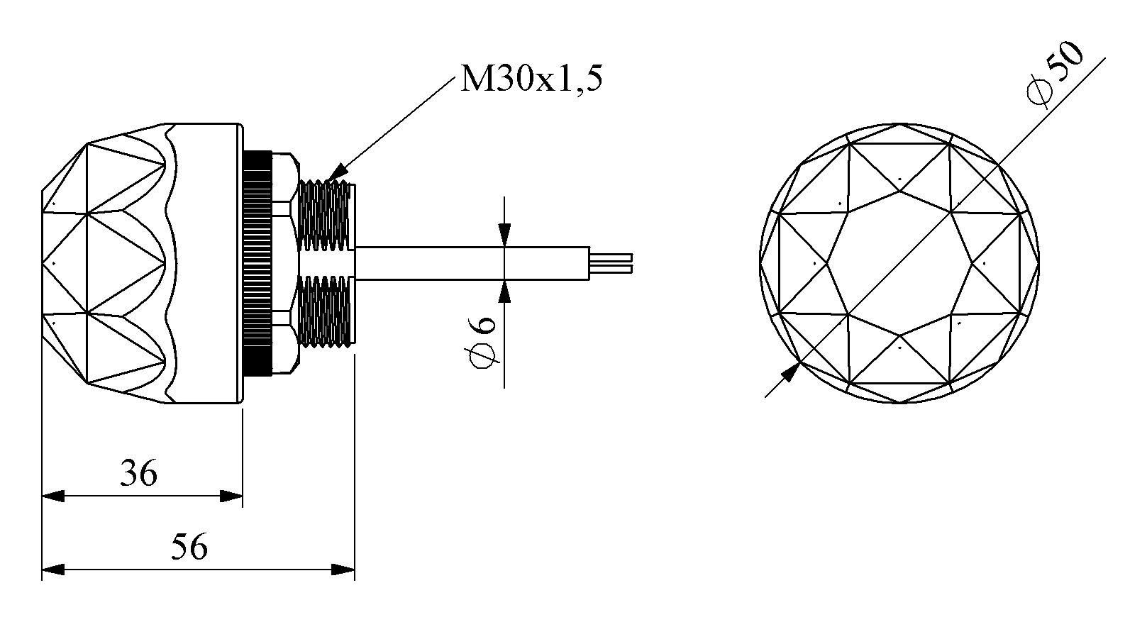 Plastik Elmas Anlık NPN-NO Dokunmatik 1m Kablolu M30 Kapasitif Buton