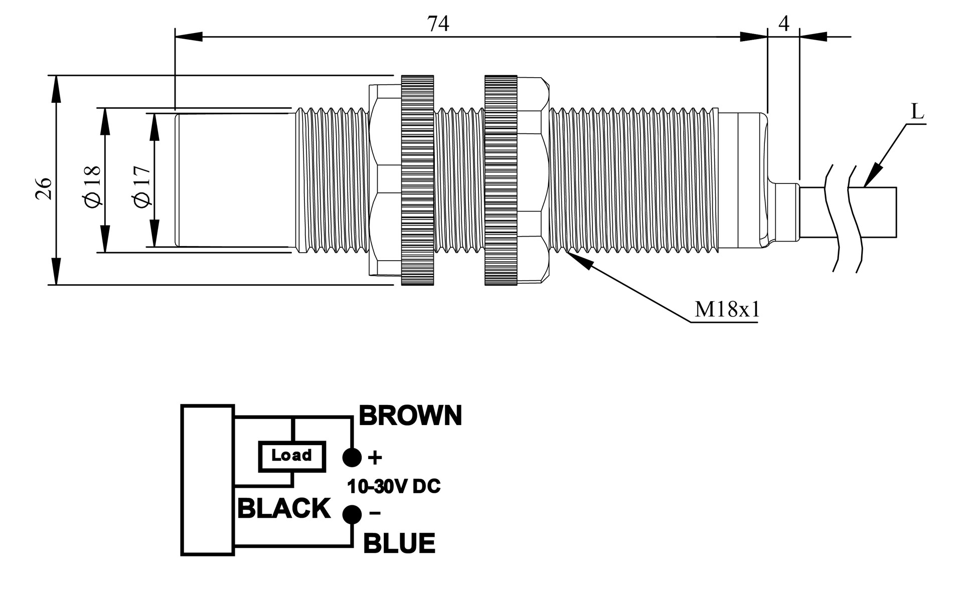 Plastik Çıkık NPN-NO 2-10mm 2m Kablolu M18 Kapasitif Sensör