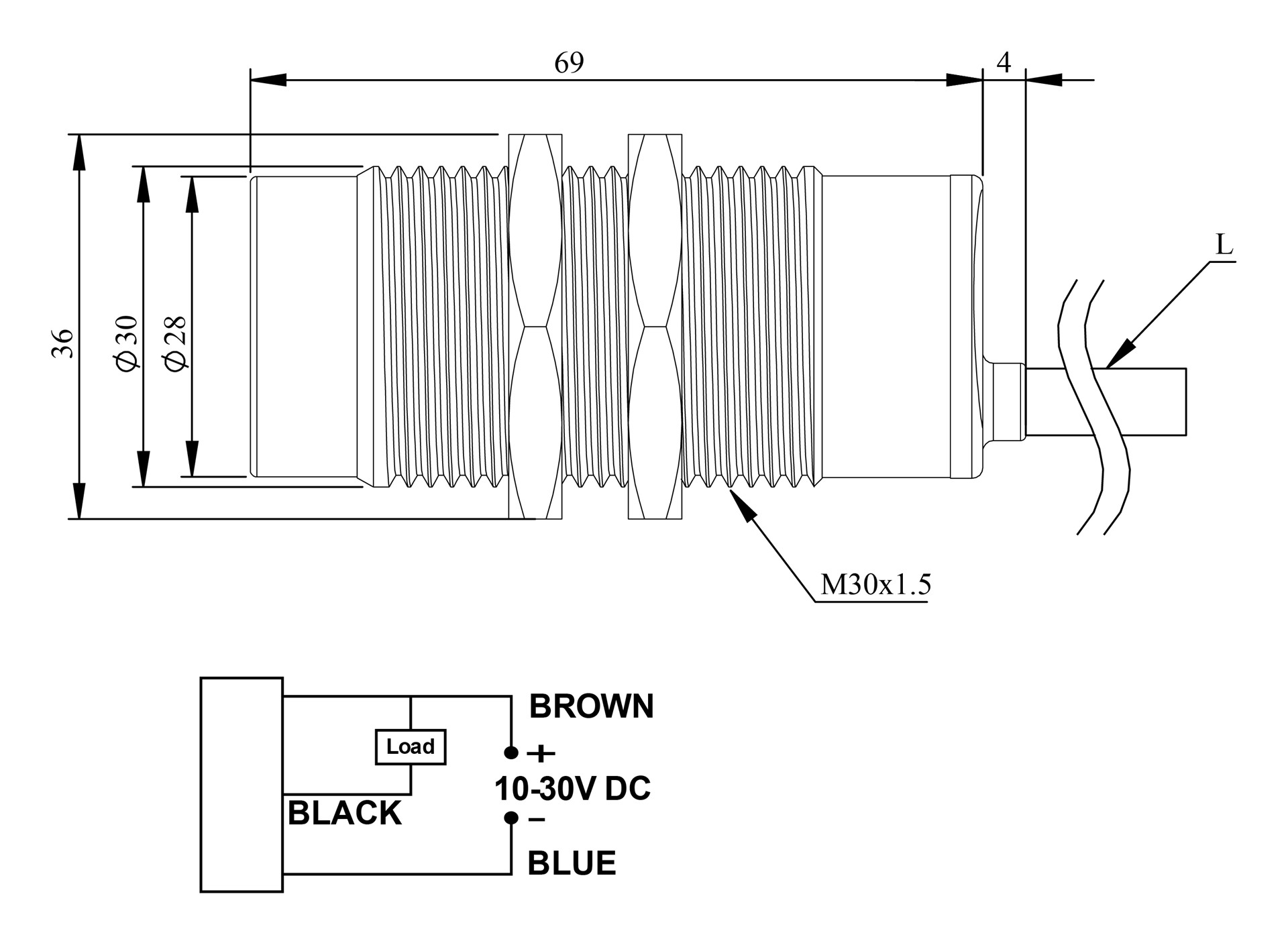 Metal Çıkık NPN-NO 3-15mm 2m Kablolu M30 Kapasitif Sensör