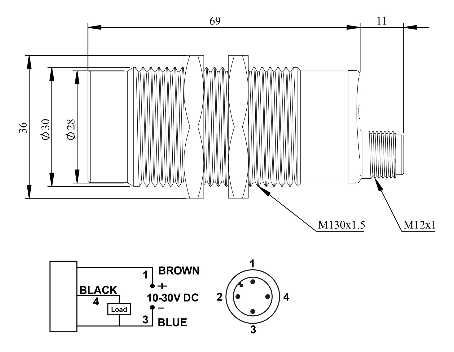 Metal Çıkık PNP-NC 3-15mm M12 Konnektör M30 Kapasitif Sensör