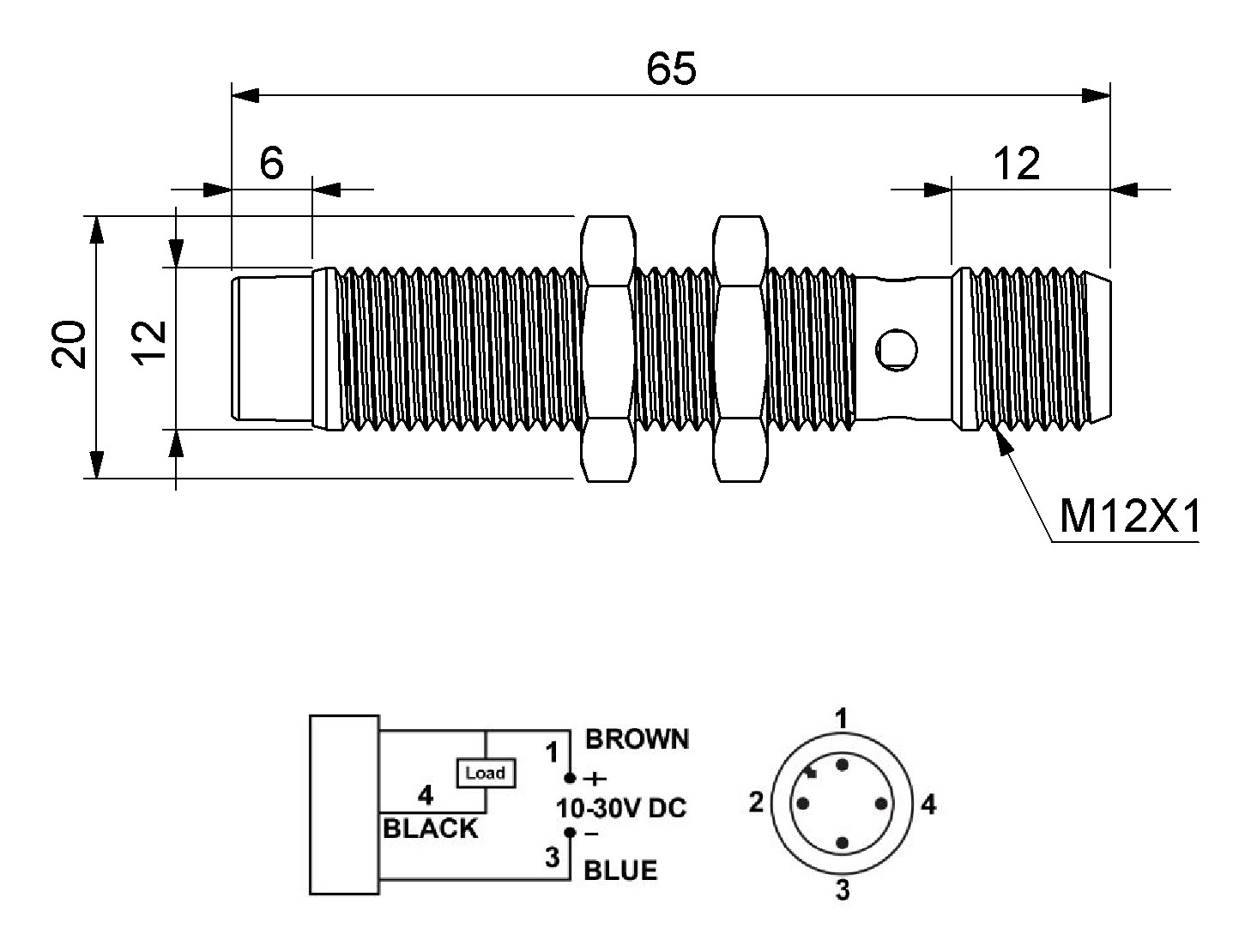 Metal Çıkık NPN-NC 4mm M12 Konnektör M12 Endüktif Sensör