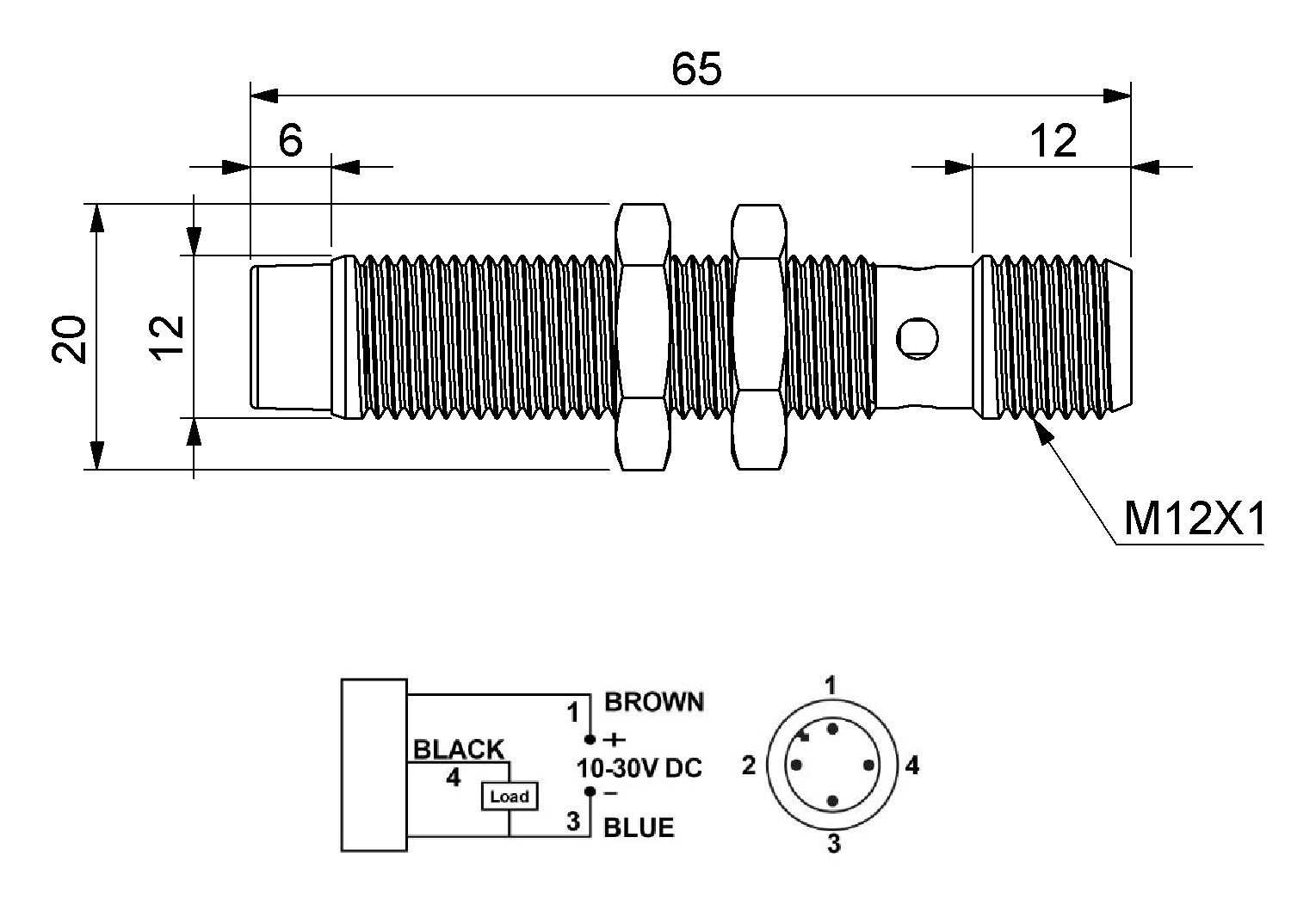 Metal Çıkık PNP-NO 4mm M12 Konnektör M12 Endüktif Sensör