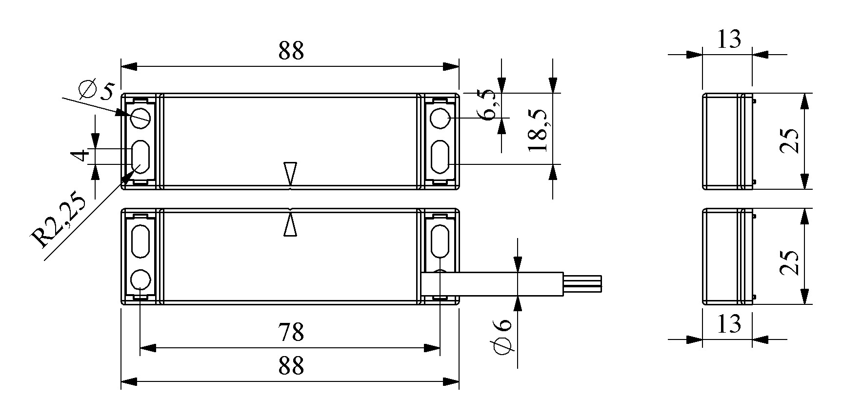 Plastik Sağ Çıkış 2NC+1NO 5mm 2m Kablolu 78 mm Manyetik Kapı Switch