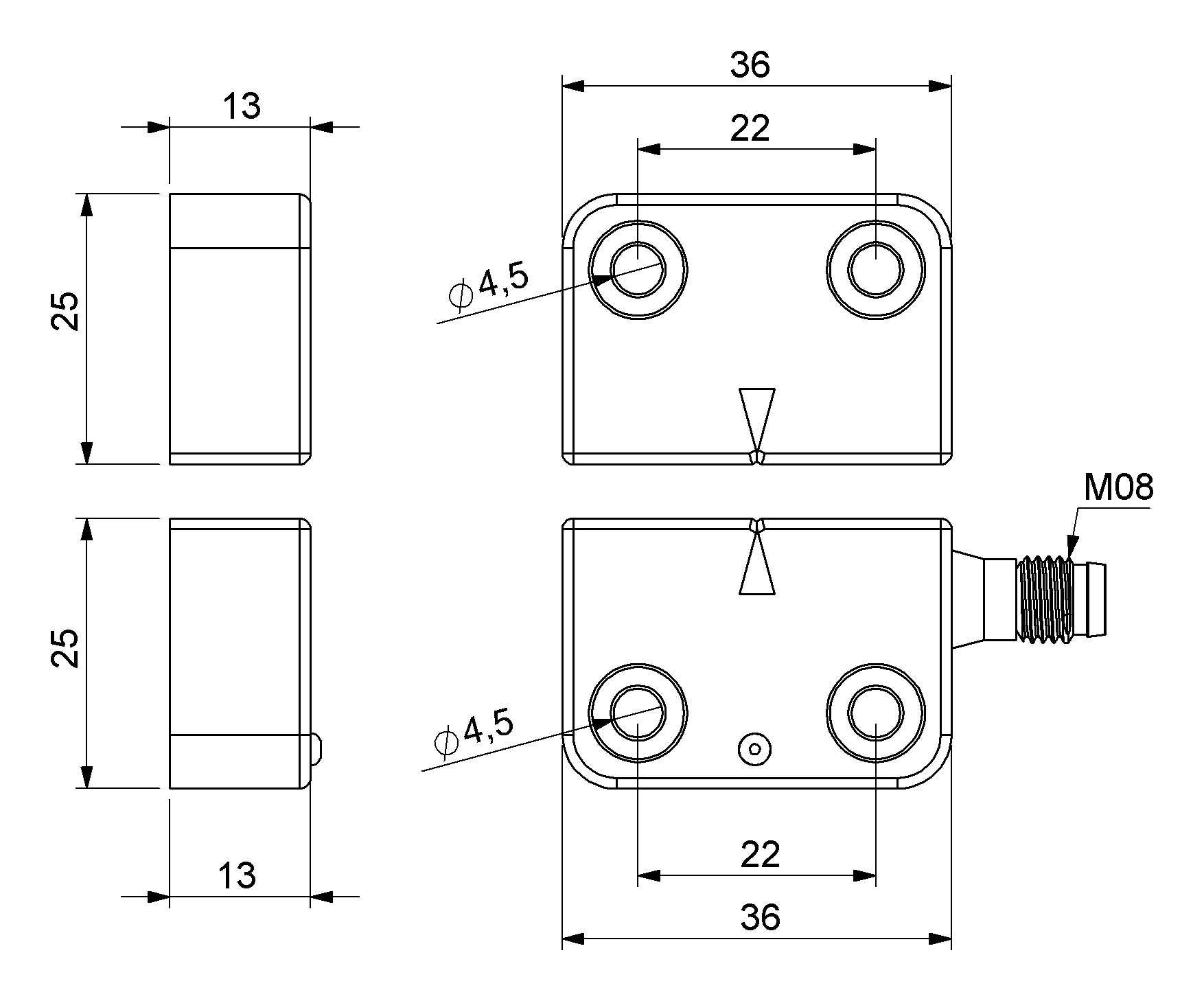 Plastik Sağ Çıkış 1NC+1NO 5mm LED'li M8*4 Konnektör 22 mm Manyetik Kapı Switch
