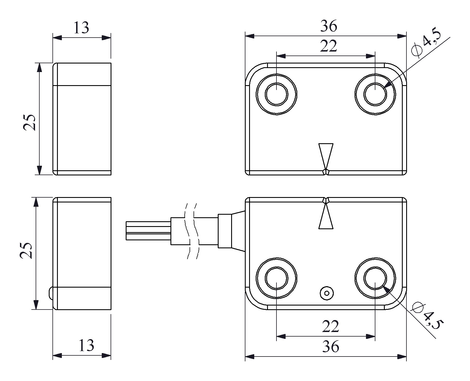 Plastik Sol Çıkış 2NC+1NO 5mm LED'li 2m Kablolu 22 mm Manyetik Kapı Switch