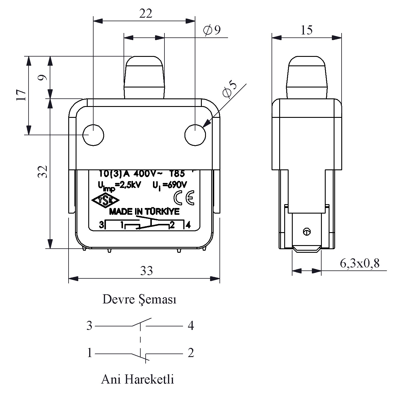 Ani Hareketli 1NO+1NC Etanjlı BS Serisi Buton Switch