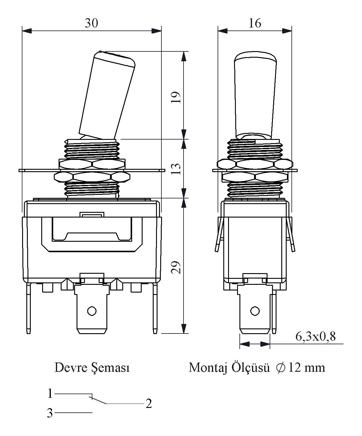 2NO+2NC Terminalli (On-On) Baskılı MA Serisi Mandallı Anahtar