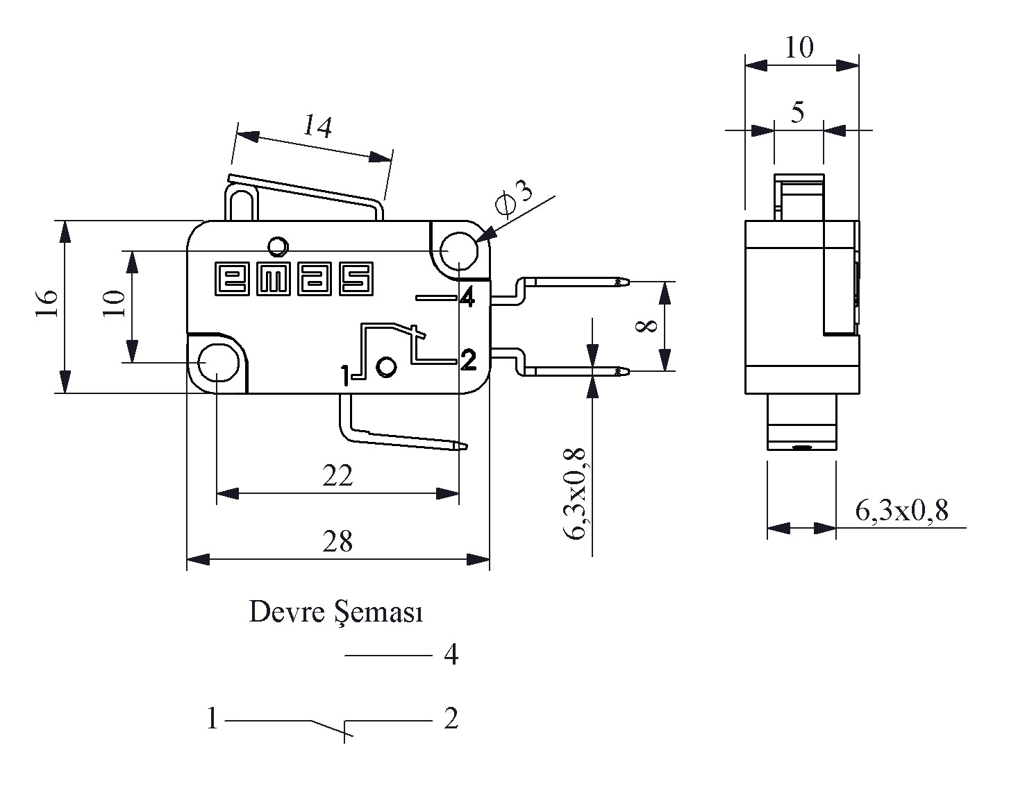 Metal Kısa Kollu 1CO MK1 Serisi Mikro Switch