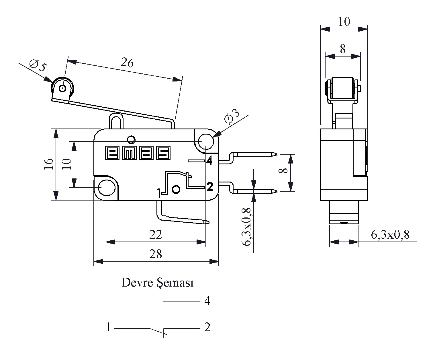 Metal Uzun Kollu Makaralı 1CO MK1 Serisi Mikro Switch