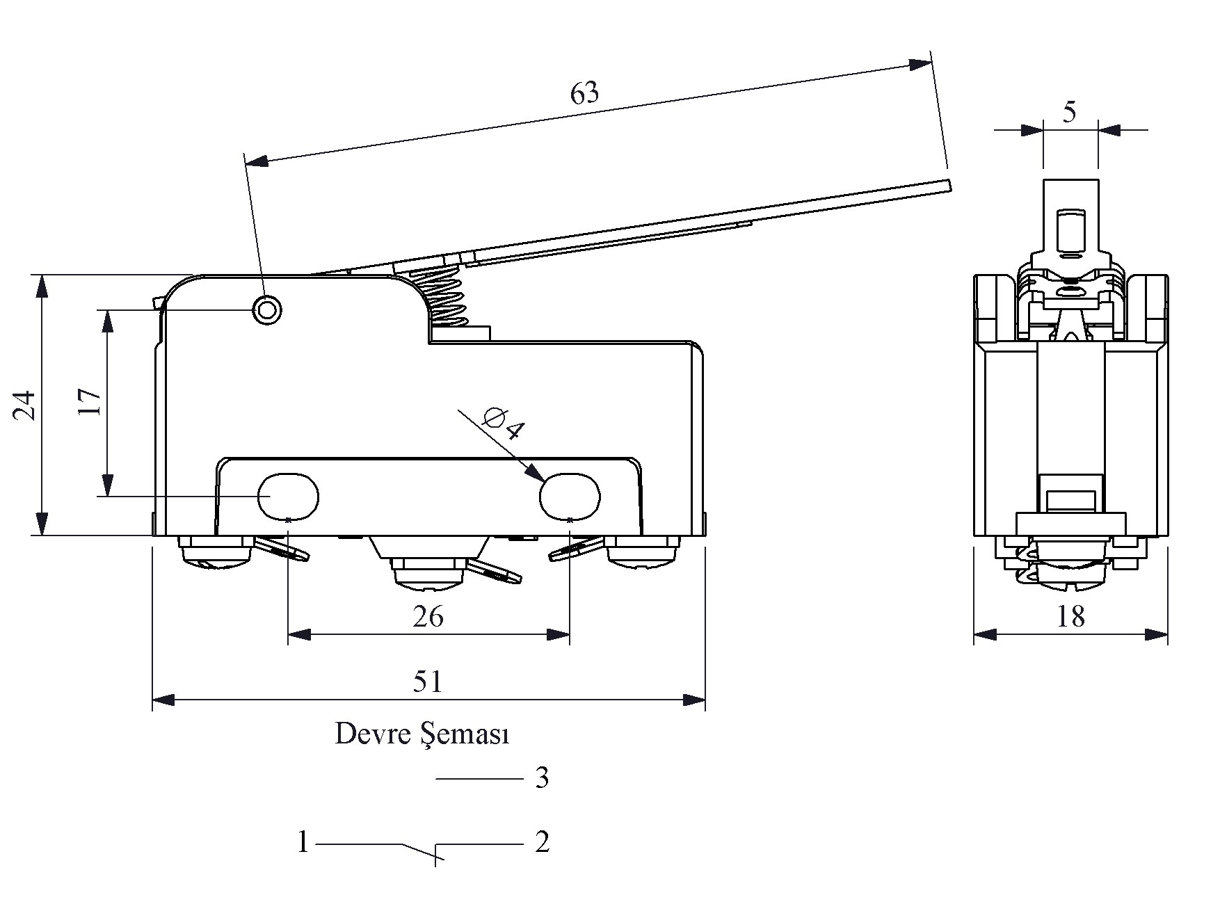 Metal Uzun Kollu 1CO MN2 Serisi Plastik Mini Switch